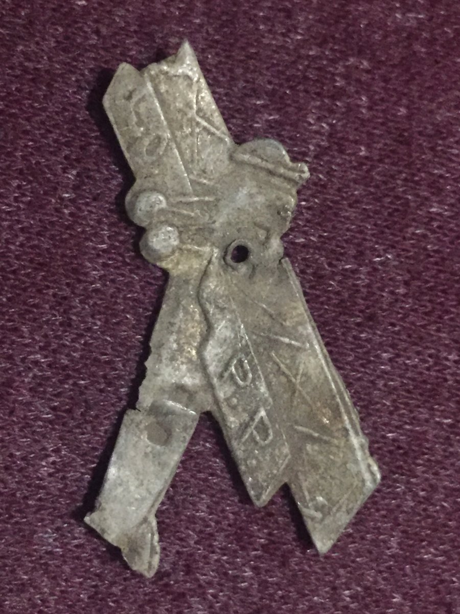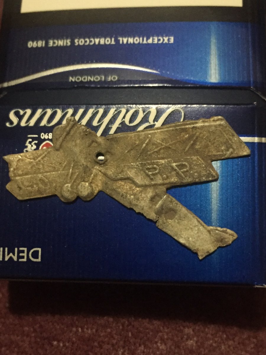 У Вашего лiтачка дырка по центру - вот это и есть след от булавки. На некоторых сразу выштамповывалось ушко с дыркой. Разновидностей было большое количество.
