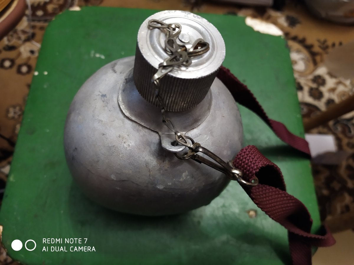 Мої вітання камради!!! Продовжуючи колекціонування фляга, натрапив та придбав таку красуню на одну літру... Підкажіть будь ласка якої вона країни та чи має відношення до Збройних сил. Матеріал - алюміній. Об'єм - 1 літр. Клейм немає...