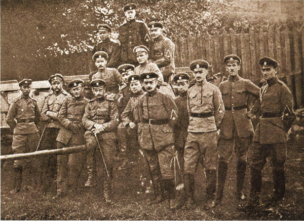 Ливенцы накануне освобождения Риги. 21 мая 1919 г. В центре на первом плане - А.П.Ливен, справа от него - капитан К.И.Дыдоров