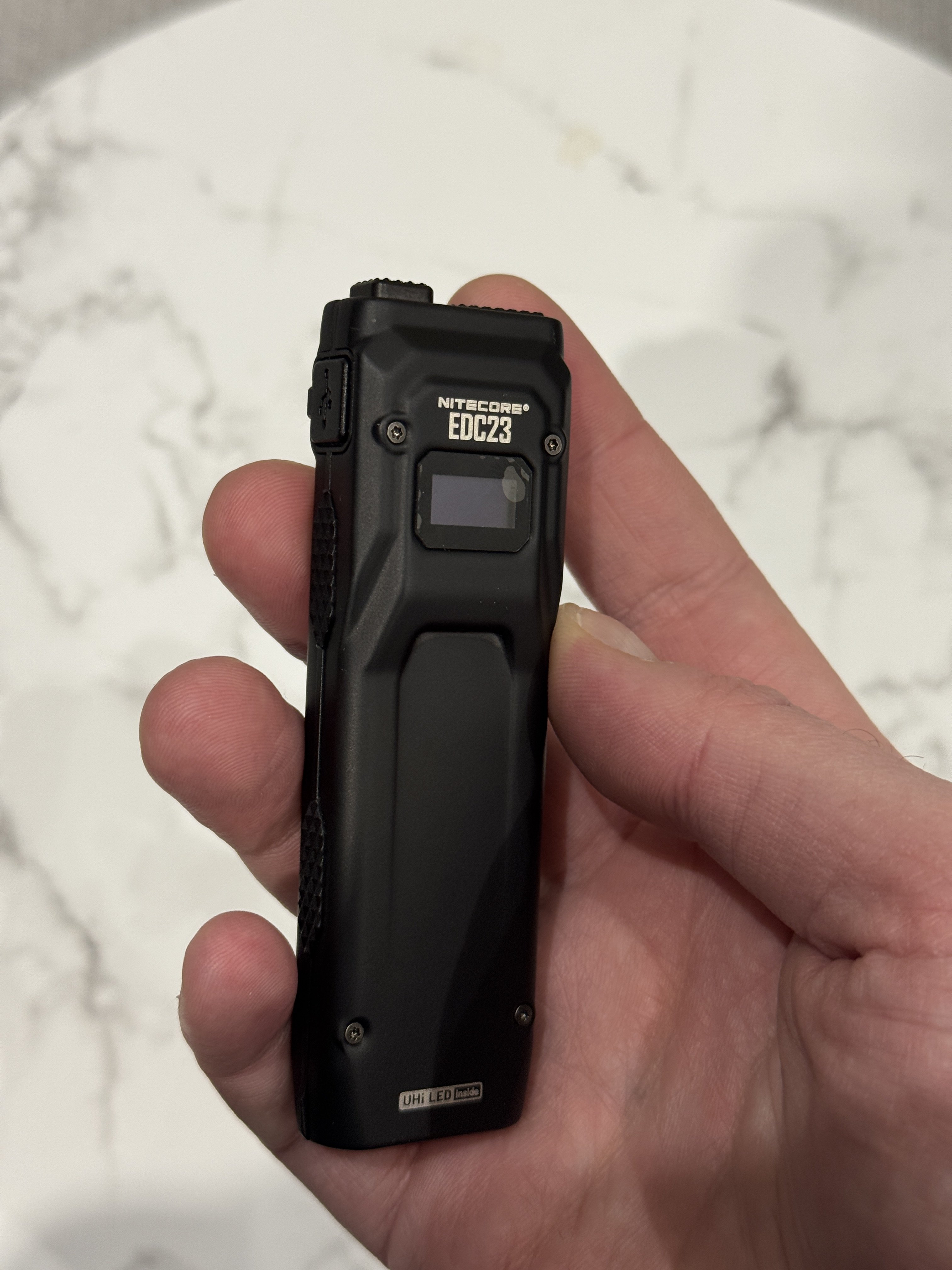 Продам ультратонкий ліхтар Nitecore EDC23 — ідеальний варіант для щоденного носіння (EDC). Головна перевага цієї моделі — плаский корпус заввишки всього 1.3 см, завдяки чому він абсолютно не заважає в кишені джинсів чи штанів. Основні характеристики: • Потужність: 2500 люмен, дальність променя до 280 метрів. • Світлодіоди: 2 сучасні чипи NiteLab UHi 25. • Дисплей: Вбудований OLED-екран (показує залишок заряду у хвилинах, напругу та обраний режим). • Акумулятор: Вбудований на 1500 мАг, зарядка через сучасний Type-C. • Матеріал: Міцна нержавіюча сталь із титановим PVD-покриттям (дуже стійкий до подряпин). • Блокування: Механічний перемикач Rapid Lock для захисту від випадкового ввімкнення в кишені. • Захист: Водонепроникність IP54 та ударостійкість до 2 метрів. Ліхтар дуже технологічний, легкий (101 г) і потужний для своїх розмірів. Має зручну кліпсу для кріплення на ремінь або кишеню. Комплектація: ліхтар, кабель для зарядки, темляк, коробка. Стан: новий / на екрані плівка. Недоліки: відсутні, невеличкий розрив на коробці. Ціна: 1800₴