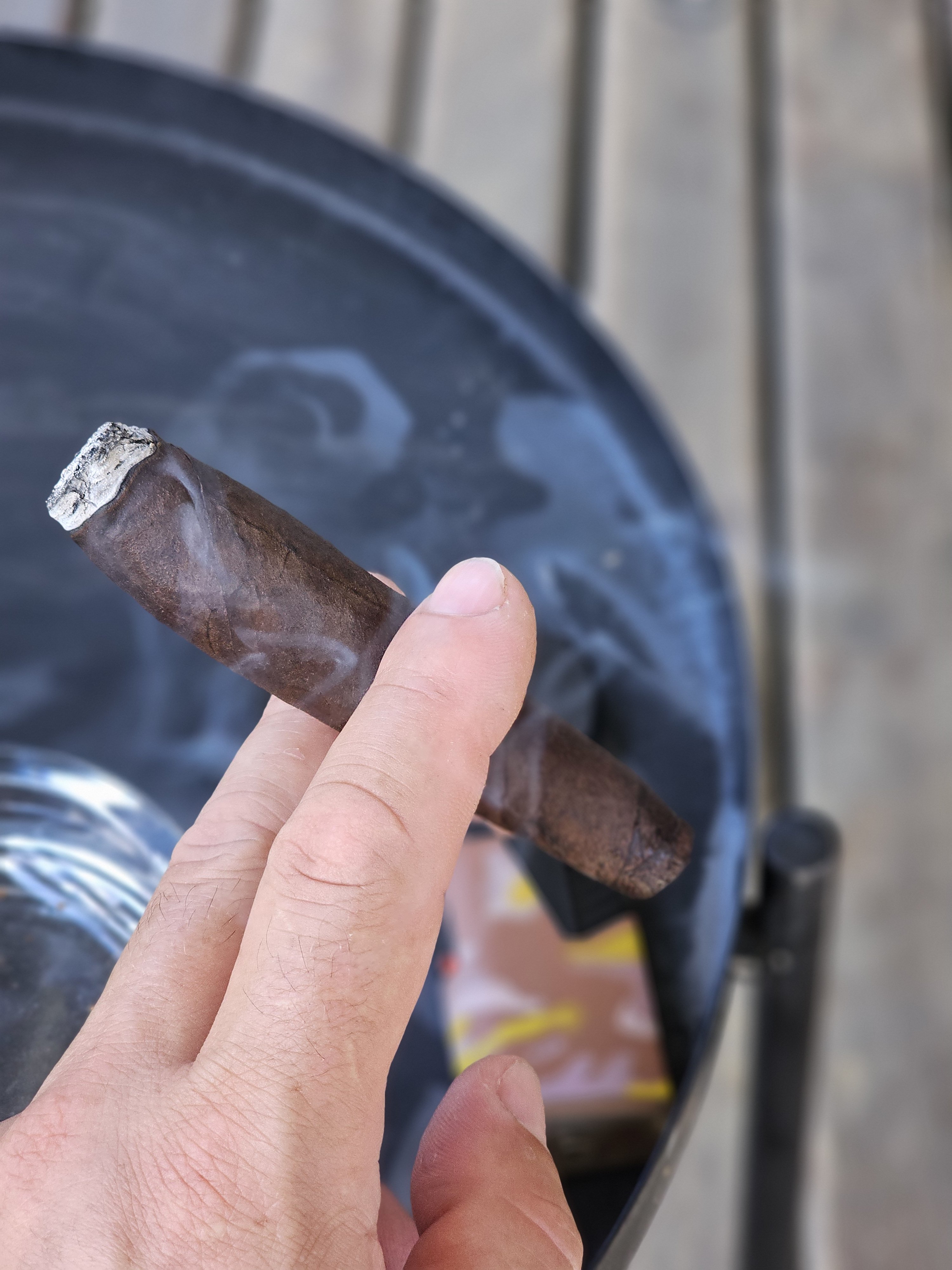 Нарешті появився час, коли є можливість з насолодою скурити сигару. Про сигару, - середньої кріпості, можна навіть сказати, що ближче до мягкої. Після смак чудовий, остання треть з яскраво вираженим мятним відтінком. Година і двадцять хвилин задоволення. Вартує своїх грошей
