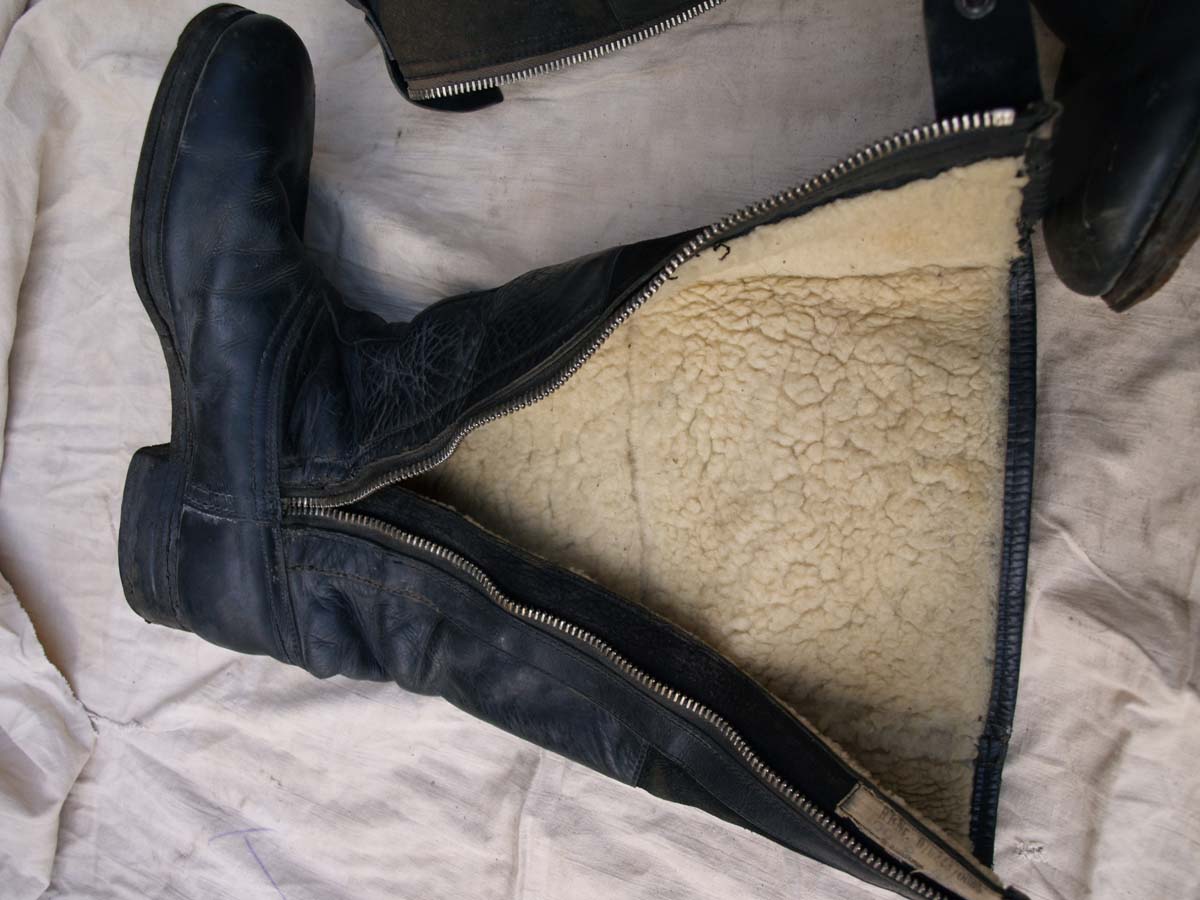 Продам сапоги Люфтваффе.Датированы 1944 годом.На правом сломана собачка.Размер-42.Есть следы небольшого ремонта.Овчинка целая.Есть другие,более детальные фото.Местонахождение- город Днепропетровск. Обращайтесь по телефону 067-630-39-97.Виталий.Стартовая цена-250$. Торг уместен.