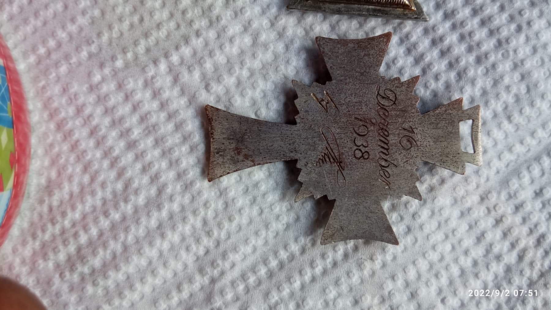 У меня материнский крест вызывает вопросы. Есть три степени - бронза, серебро и золото. Наружка вашего под золото, обратка ржавый металл? Там то же должна быть позолота. На задней стороне, после цифры 16, должна стоять точка, на фото не вижу, может конечно фото исказило. Золотой выдавался за рождение более 8 детей. Откуда он у нас здесь в те времена? Лично мое мнение.