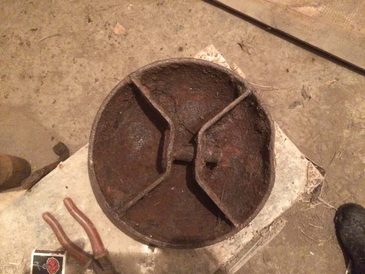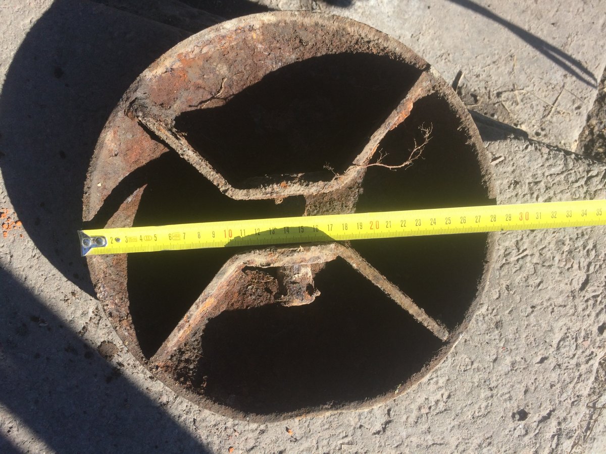 Приветствую. Сегодня по 41-му году попался такой люк, похож на вентиляционный, помогите пожалуйста определить с какой техники. Так как рулетки под рукой не было, приложил спичечный коробок, завтра замерю диаметр. Заранее благодарен.