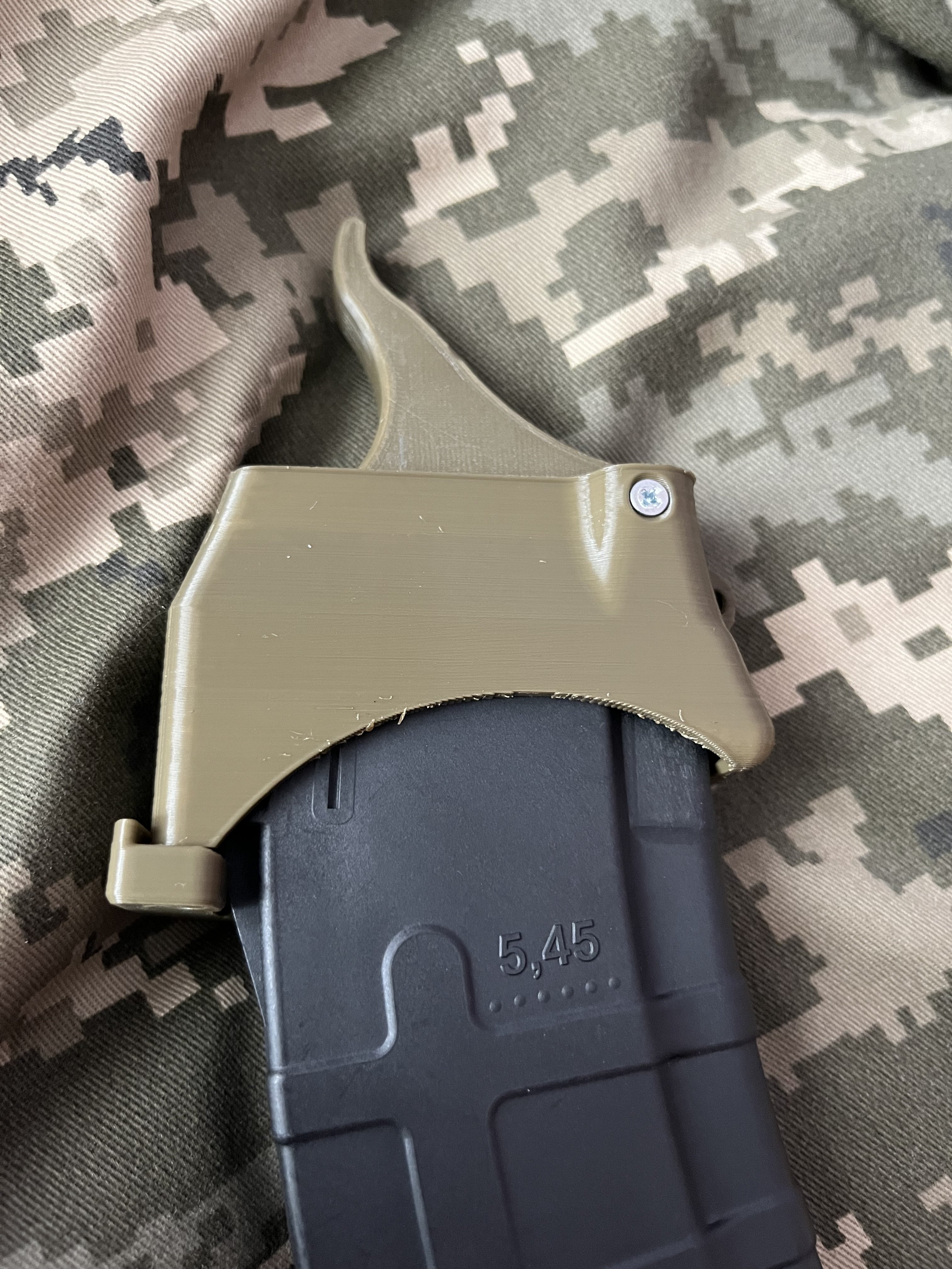 Компактний лоадер для магазинів АК, що прискорює спорядження. Швидкозарядник Заряжайка магазинів 5,45 і 7,62 Легкий та зручний. Поліпшена система фіксації. Loader універсальний на 5,45 і 7,62 Матеріал: пластик PLA, Колір: хакі Розмір: 10*9 см Вага: 57 грам. Міцна, довговічна пружина.
