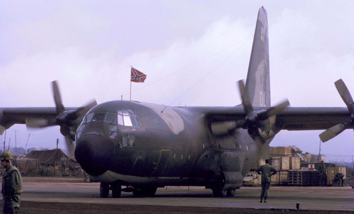 C-130 под флагом Конфедерации на аэродроме Кхешани. Южный Вьетнам. 1968г.