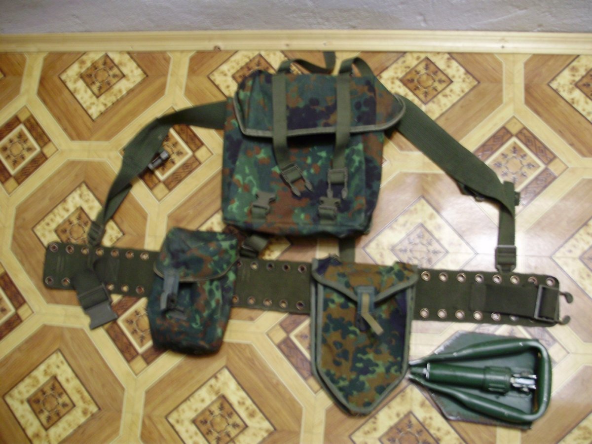 Продам саперную лопатку армии бундесвера с РПС. (Б/У). Комплектуется унитарным подсумком, фляжным и лопатным подсумками. Цвет флектарн. Размер пояса 100 см. Фастексы все целые. Состояние хорошее. Есть небольшие потертости. Цена 1000 грн. Отправка Новой почтой , оплачивает покупатель.