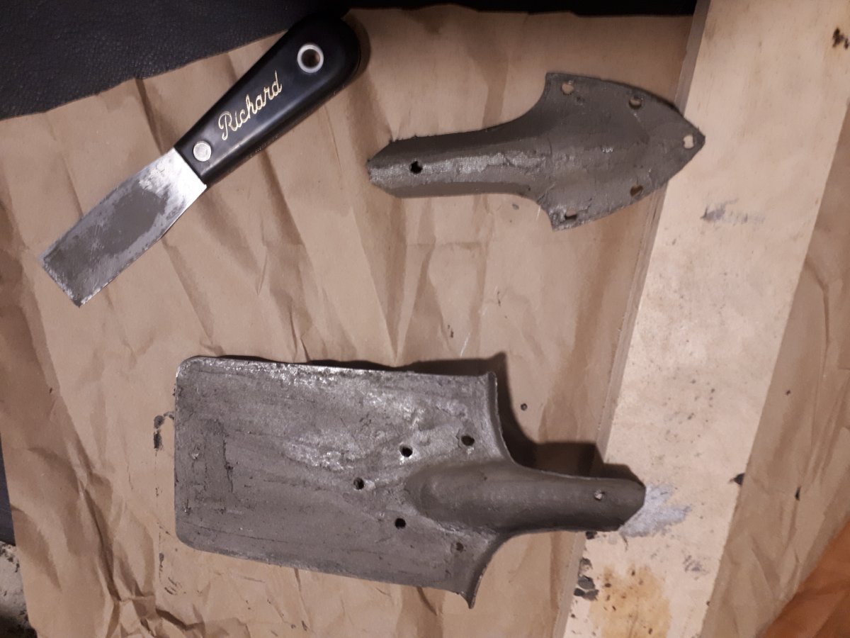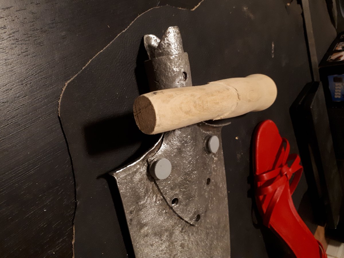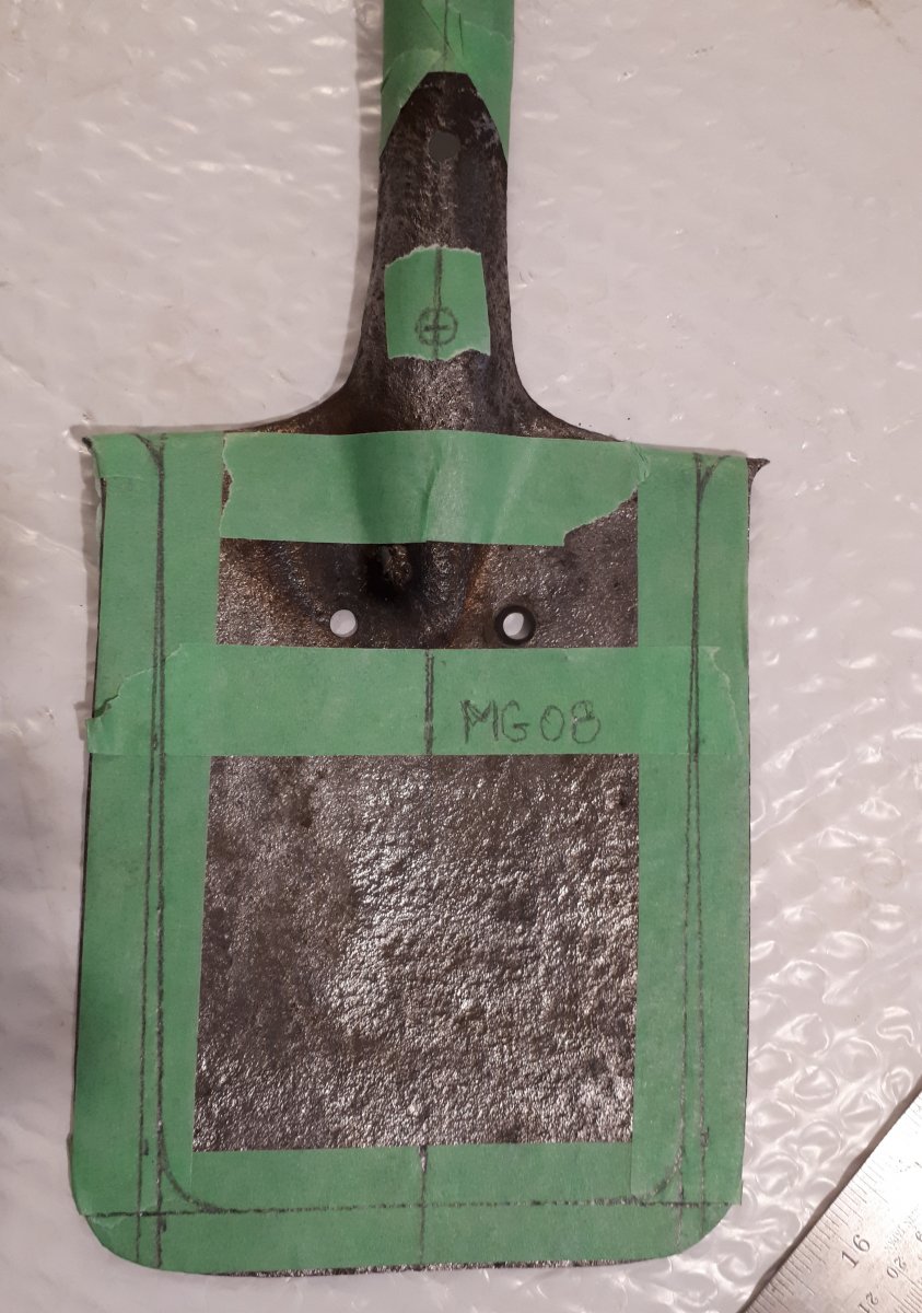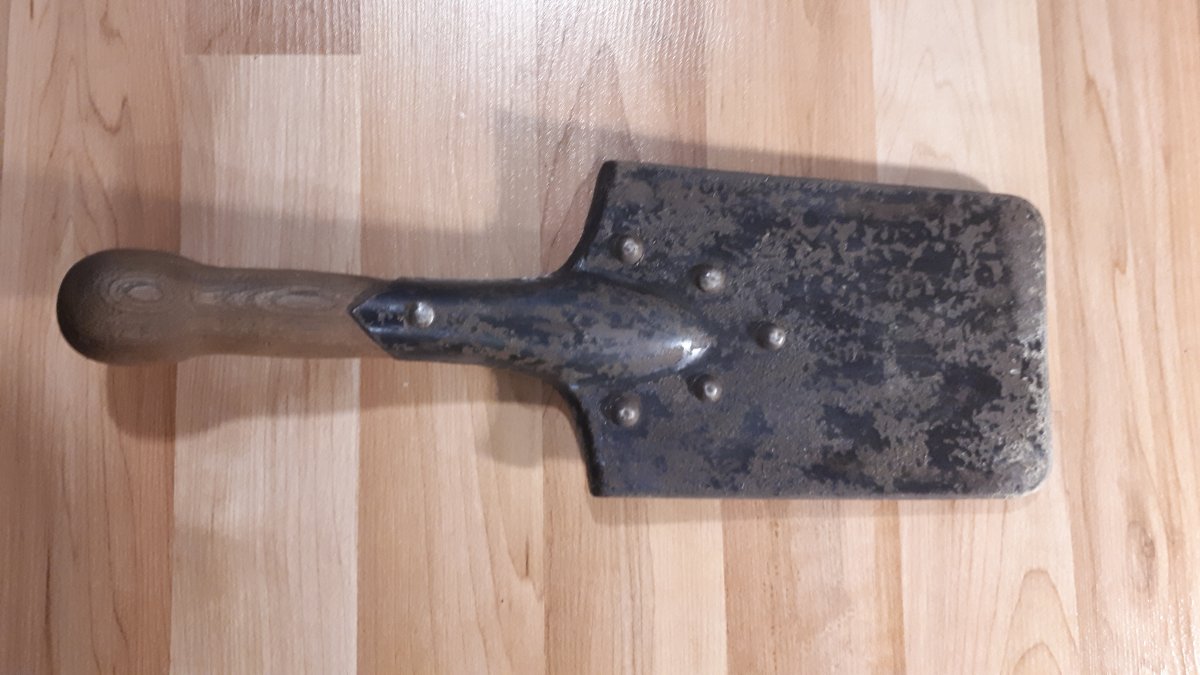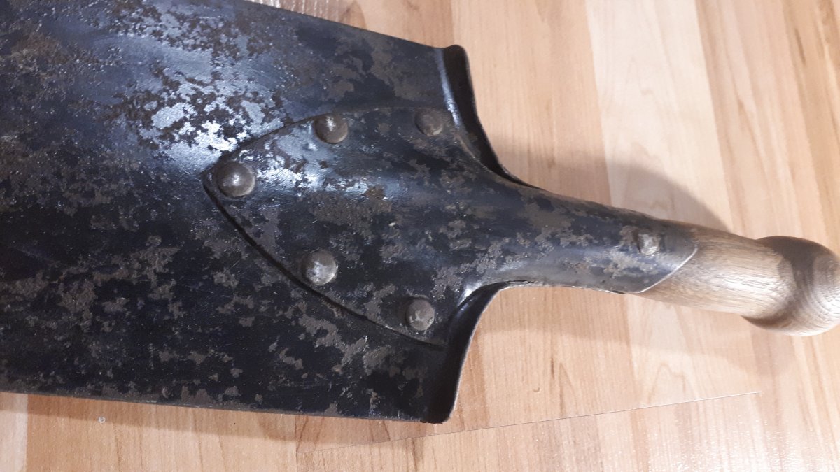 Приветствую Всех. Давно валялась царская лопатка. Была довольно ржавая чуть кривая с вырваными 2мя закекпками. В уксусе и потом щеткой была очищена. Надо было подварить перо, в месте верхней заклепки. Со временем планы поменялись, и решил сделать пулеметную лопатку АЛЯ МГ08 1й мировой. Обрезал сделал рукоять. Копировать не стал, но так что бы похожа. Шпаклевка локтайд заполнил поры. Заклепки готовы. Прошу совета. Предмет на полку и жаль было выкинуть вторая жизнь итп. Как довести до ума, краска с ржавчиной обжечь рукоять . Хочу сделать боевой вид, что бы не выглядела напомаженой. С уважением. последнее из сети