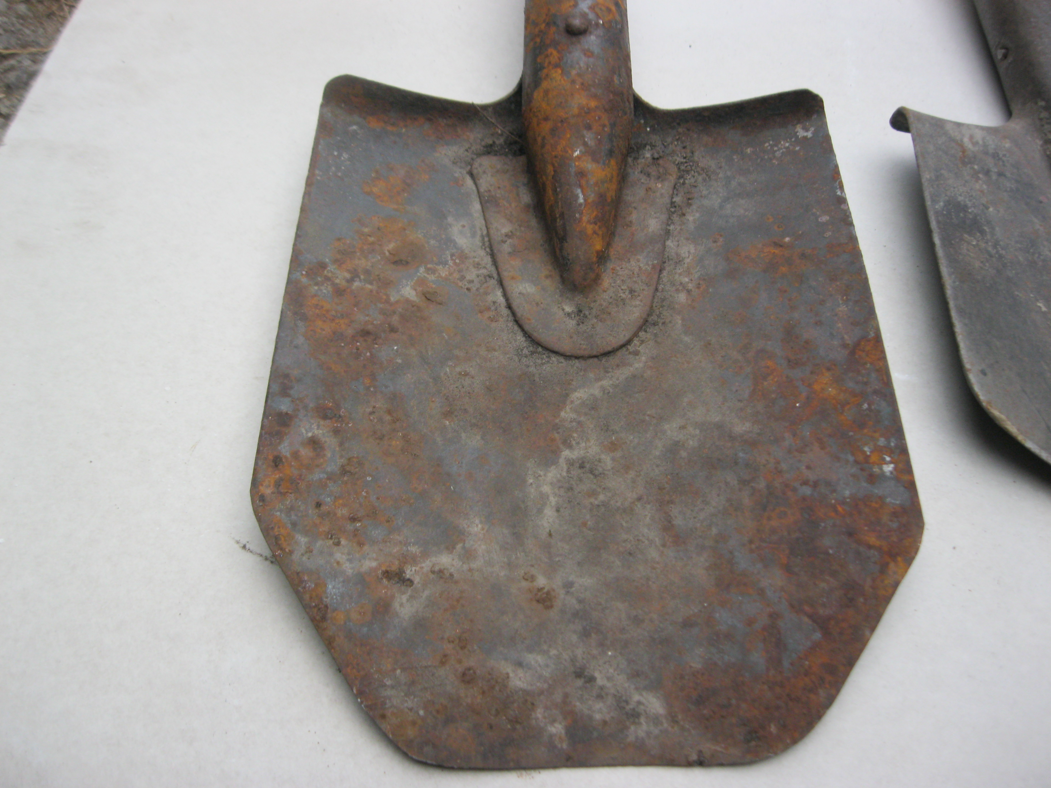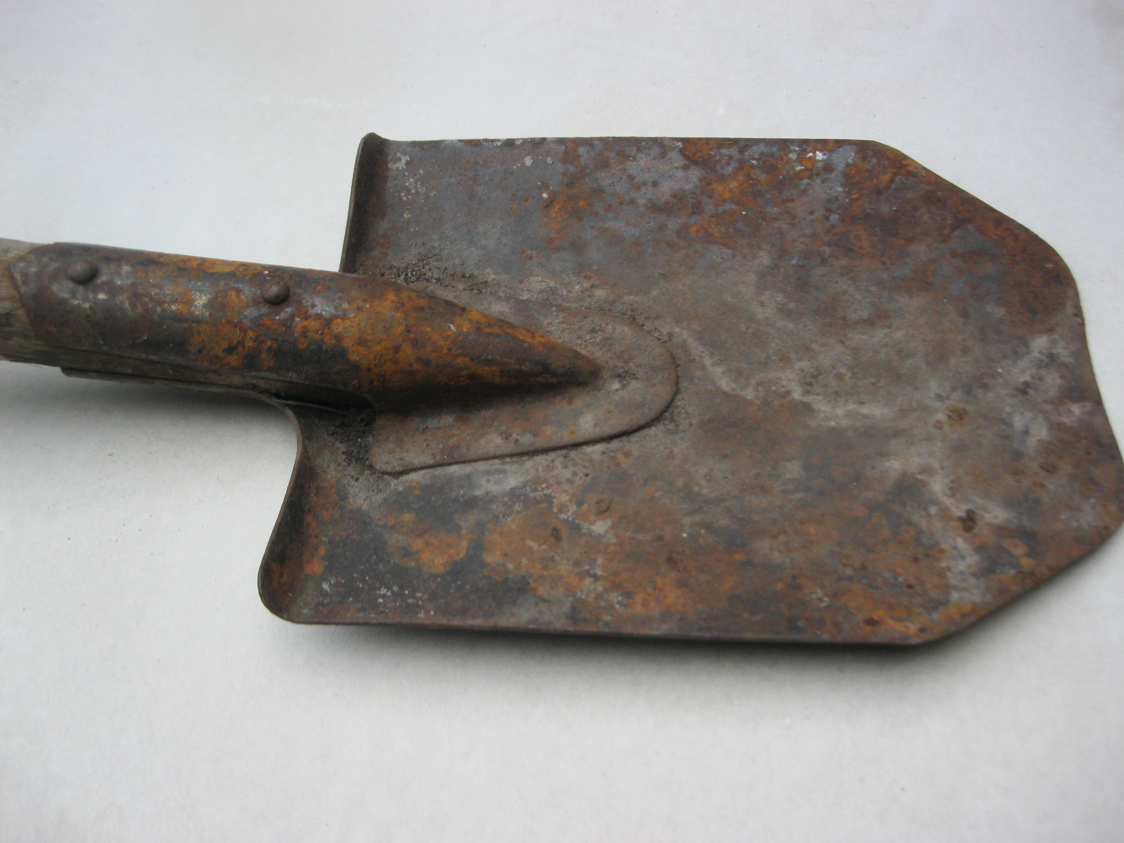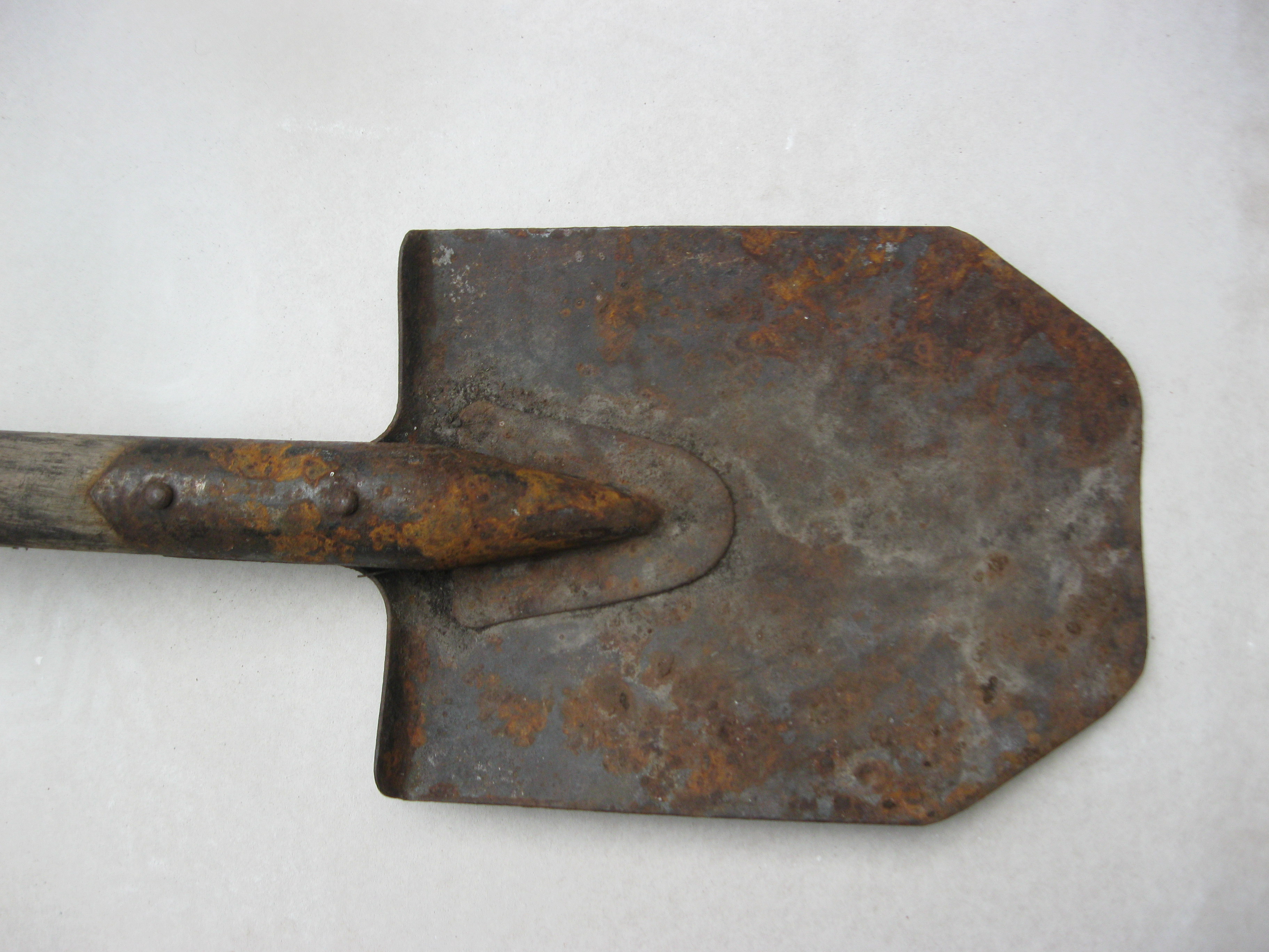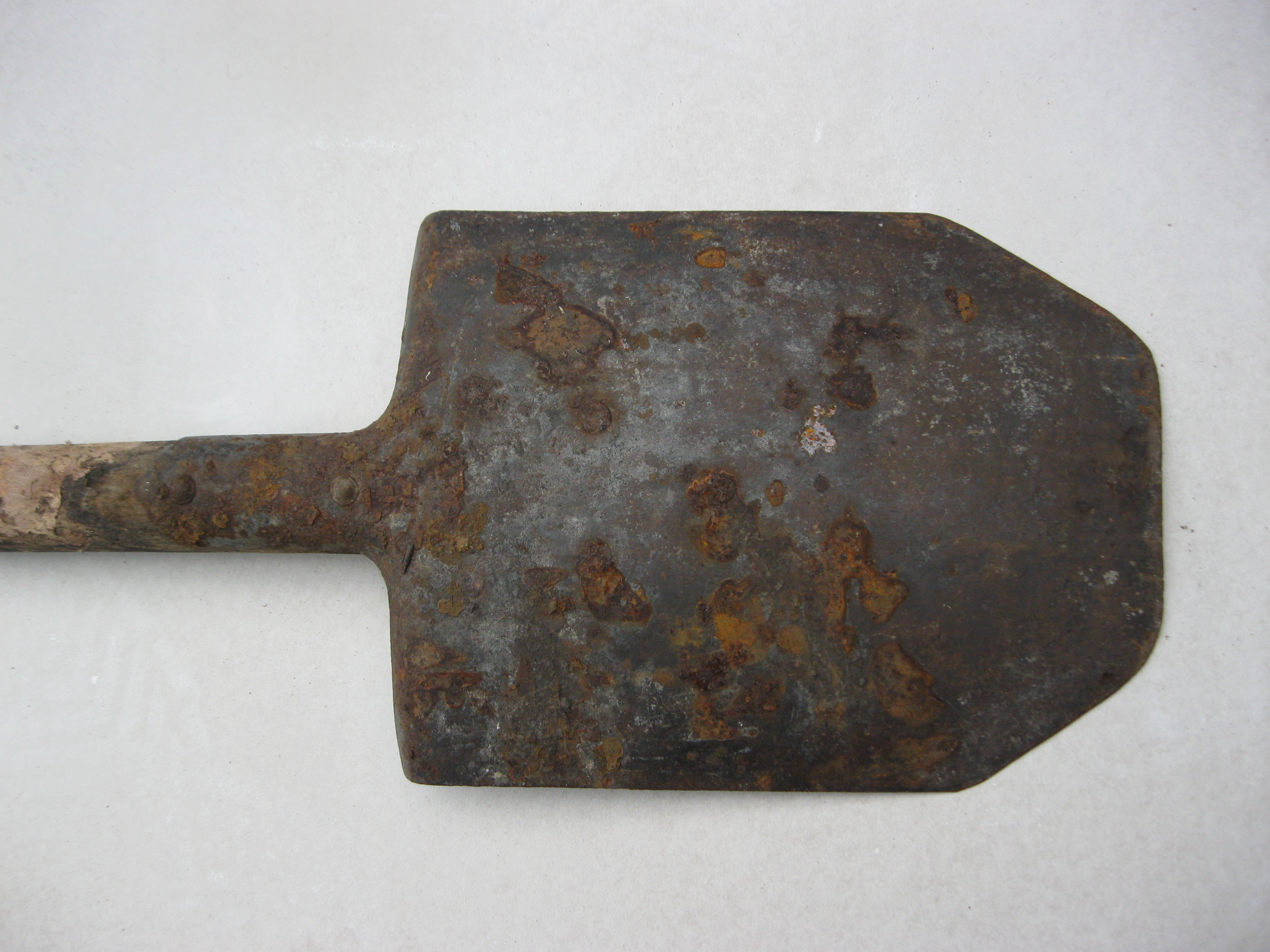 В "молодості" була чотирикутною садовою, а потім лишнє їй "відчикрижили". При союзі такі лопати випускав завод КРАЗ. До ВВВ та інших воєн немає ніякого відношення. Якщо метал в нормі, то можна і зараз юзати. Важкувата тільки вона, як бслка