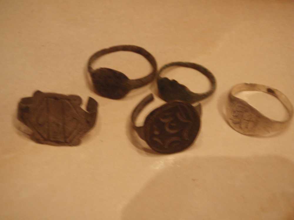 Лот копанных колец. От средневековья до войны. Первые 4( средневековье,татары) №1 серебро, №2,3,4-бронза. Последнее(серебро)-с инициалами НА копано на немецких позициях(разм.18-19) Цена за весь лот- 100 грн.