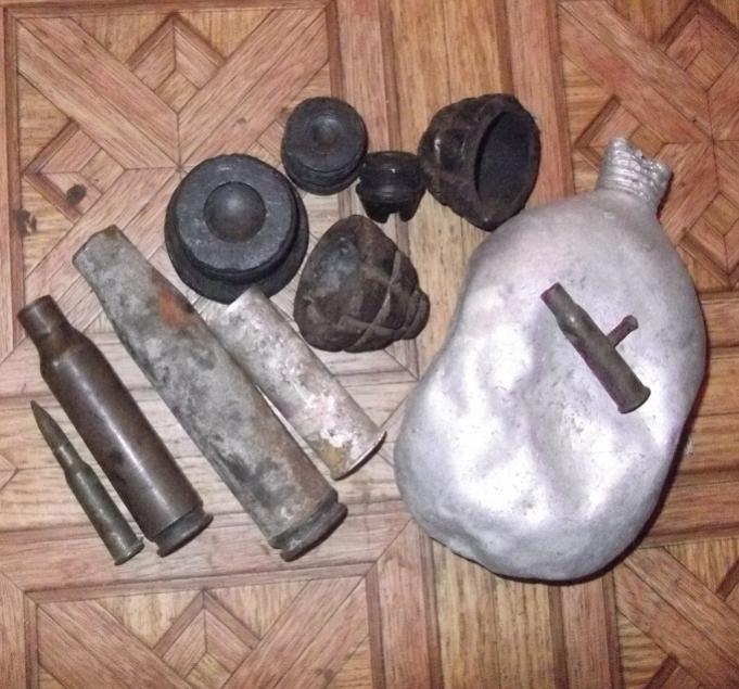 Приветствую. продам -80 грн 2 осколка ф-1 под шкатулку. заглушки,гильза ПТР,ВЯ,ммг патрон мосинки побитая фляга клеймо 39 год красный выборжец. и гильза с диска ДП, гильза нем. ракетницы.