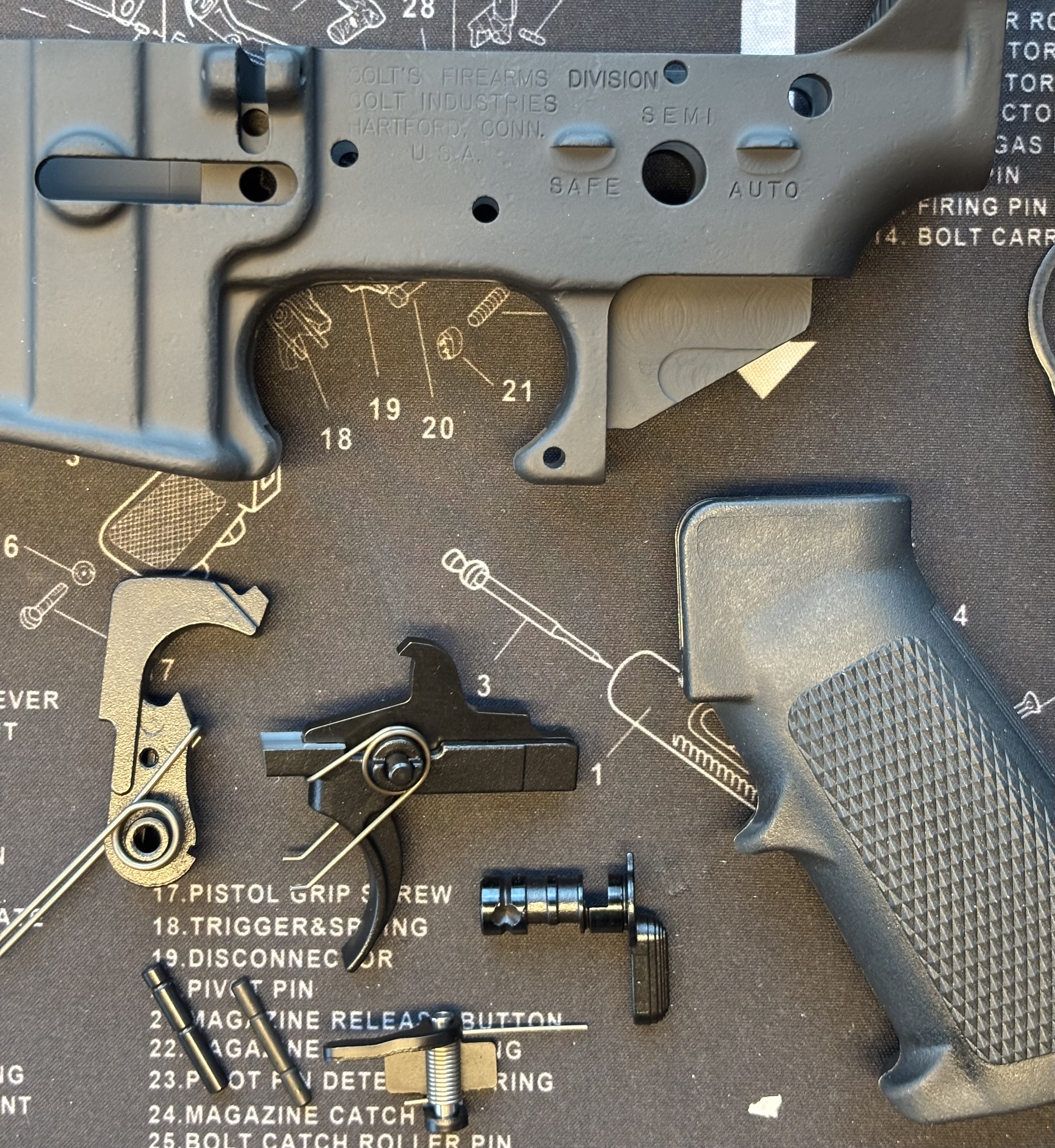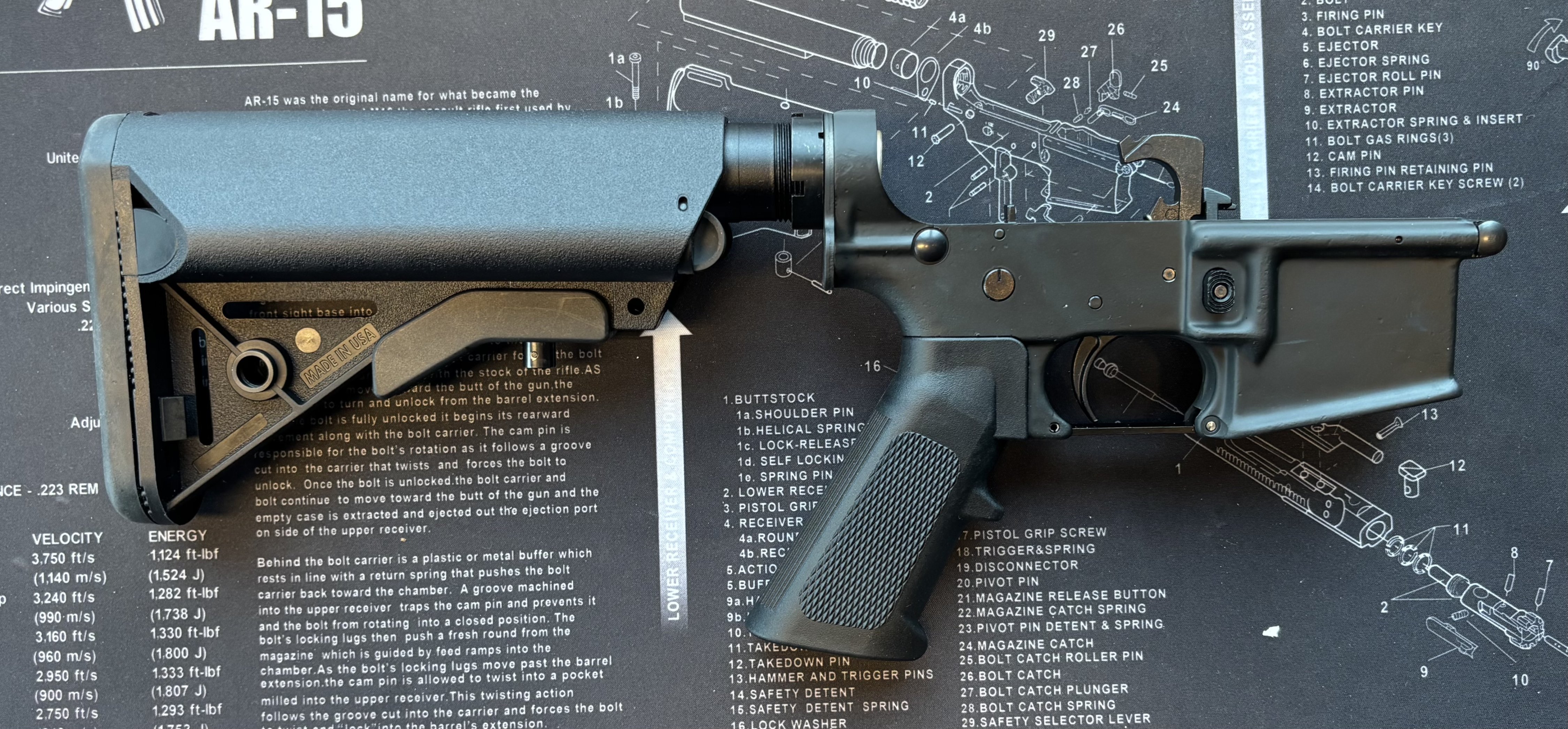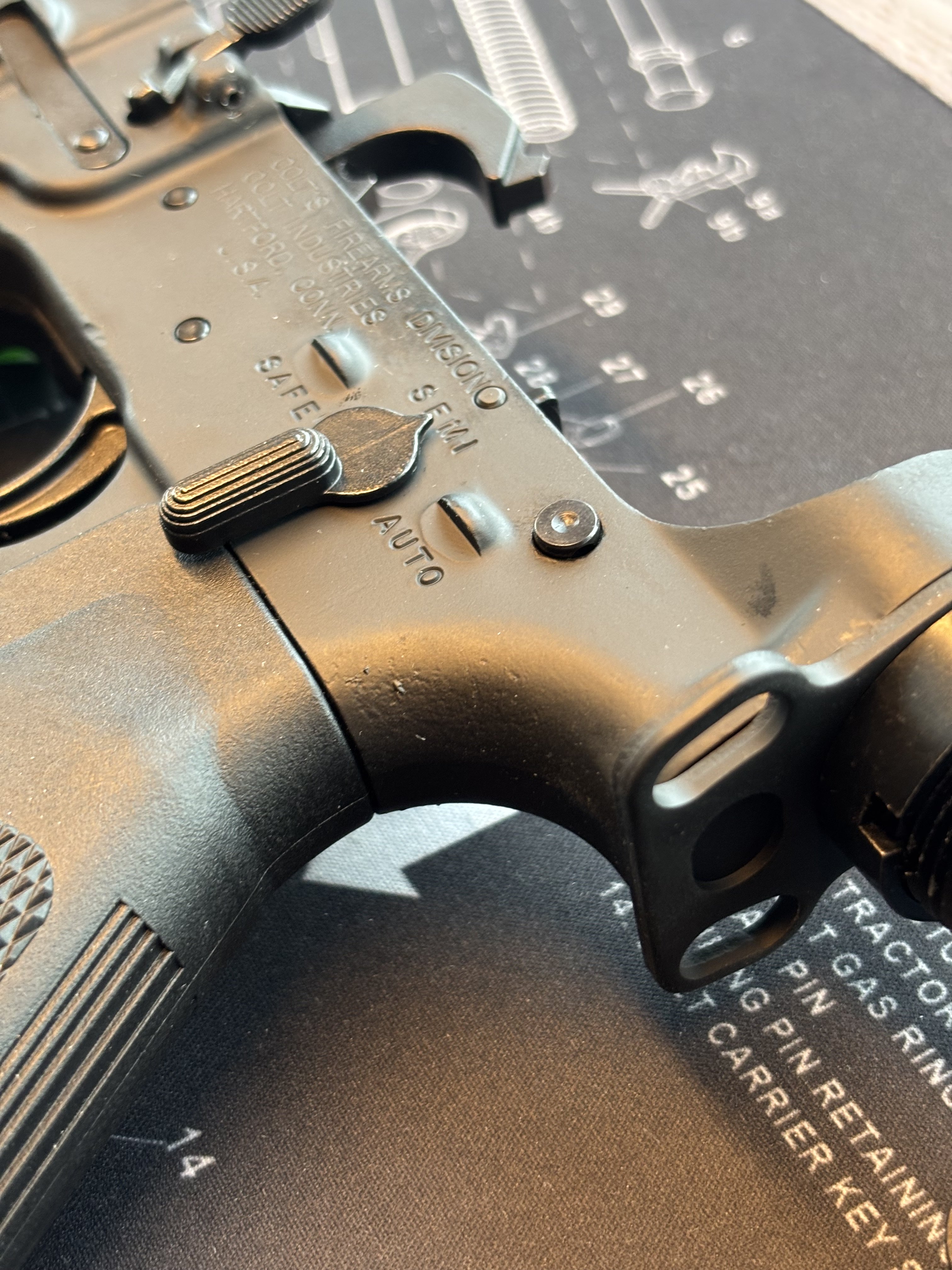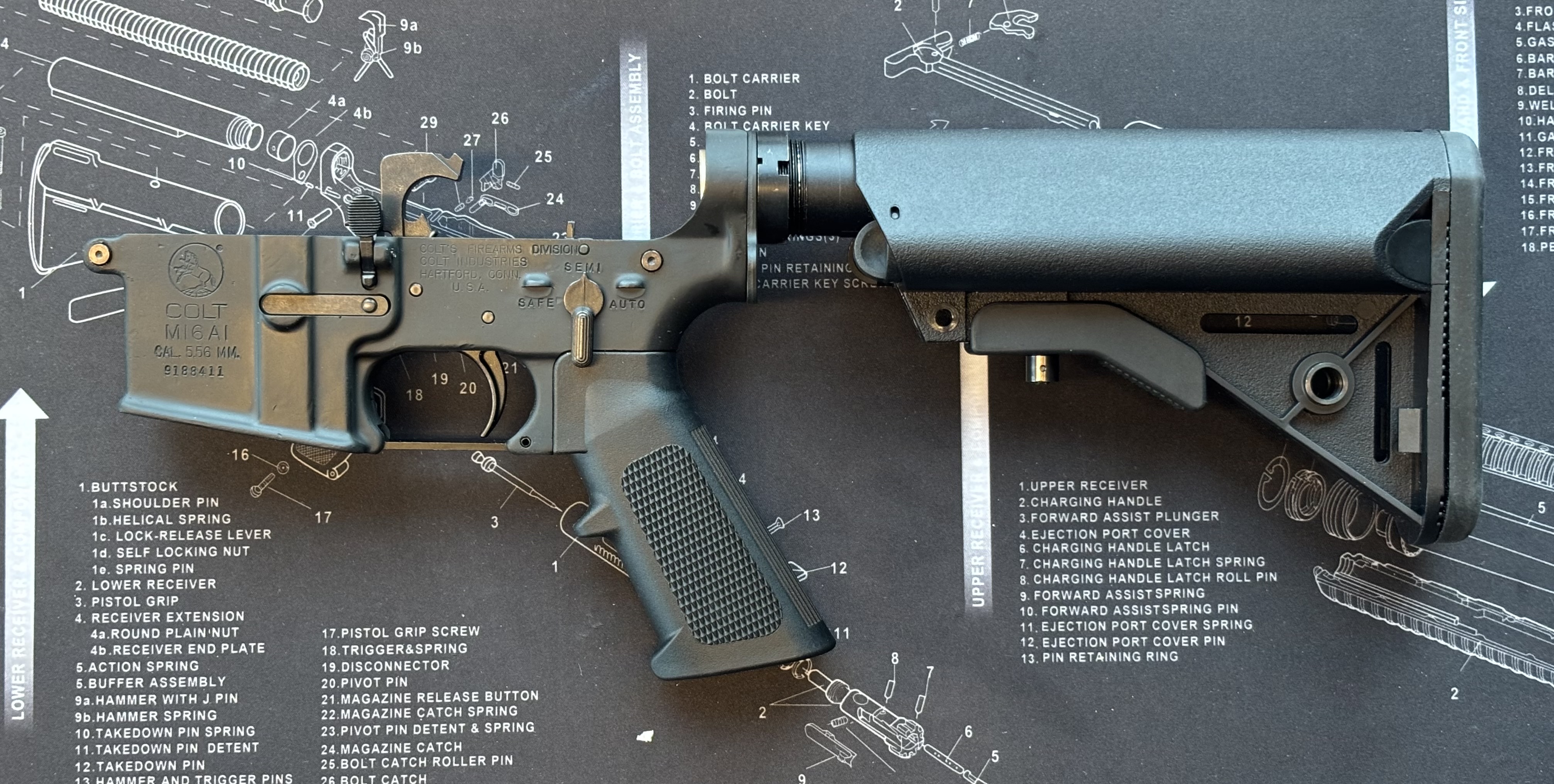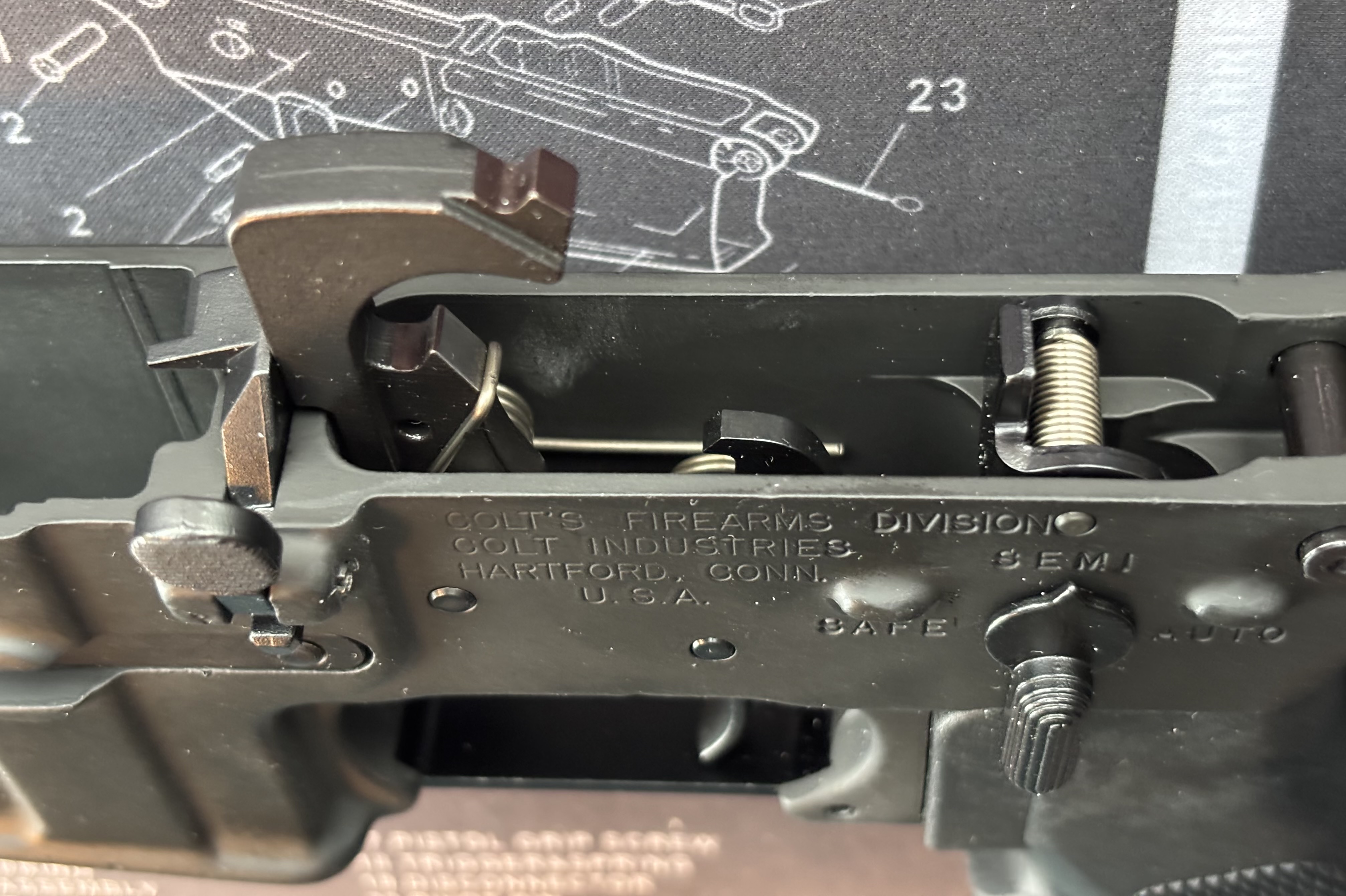 Lower Colt M16A1 Оригинальный ловер M16A1 (full auto) производства Colt. УСМ full auto и мелочевка Colt. Труба Mil-Spec 6 Position Buffer Tube Kit. Приклад B5 Systems SOPMOD Mil-Spec BLACK. Пригоден как в коллекционных, так и практических целях. Lower покрашен Cerakote Armor Black. Киев. Цена 1000$ (без приклада).