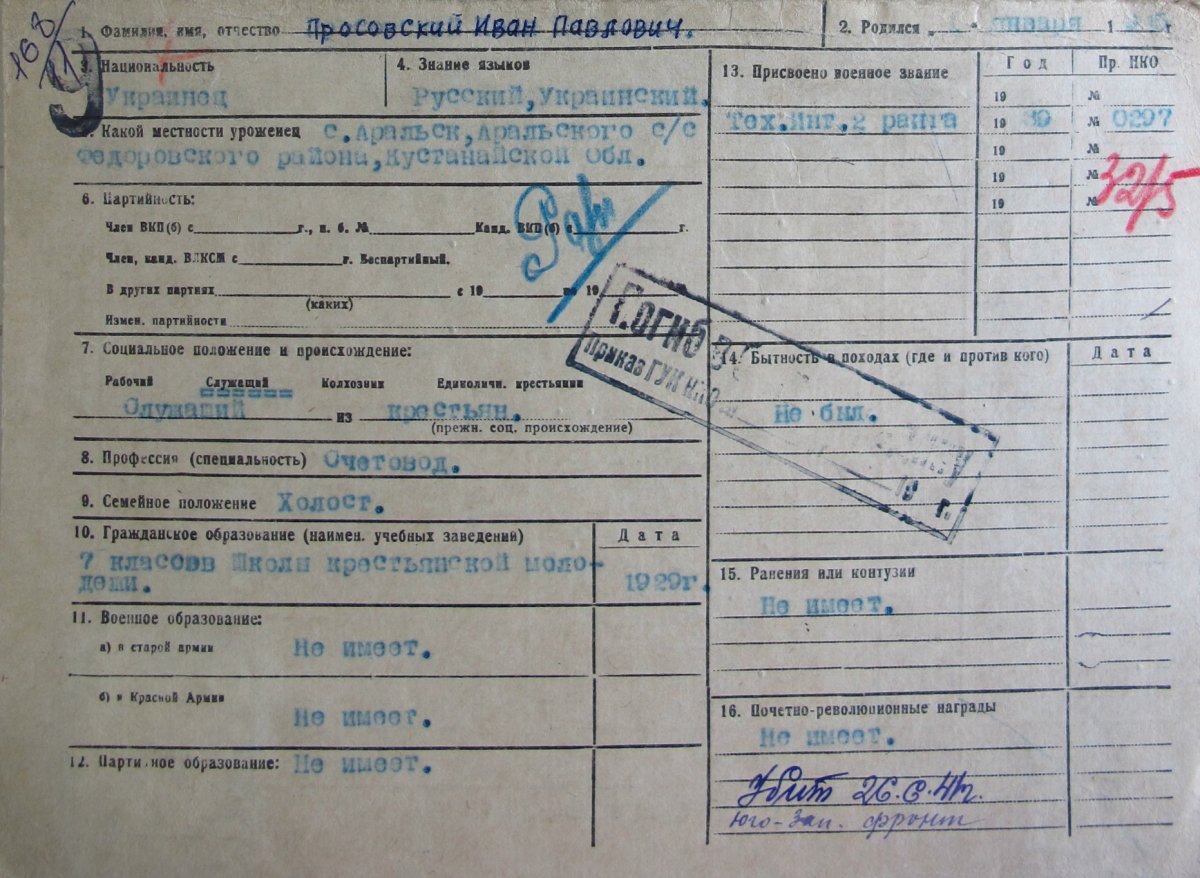 Что касается Просовских, то, благодаря работнику Костанайского областного архива Мире Александровой, удалось установить, что у Ивана был младший брат Николай, который также был офицером и пропал без вести в 1943 г.