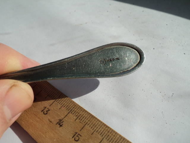 Попалась вчера ложка. Понятно, что наша. А вот каких примерно годов? Цены нет. Значит, годов 50-х? Клеймо - шестеренка с прописной буквой и.