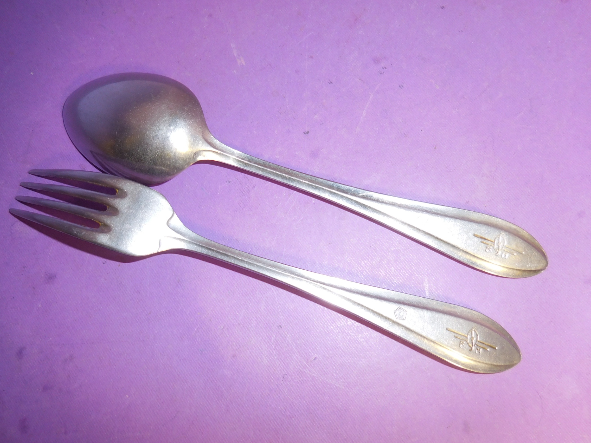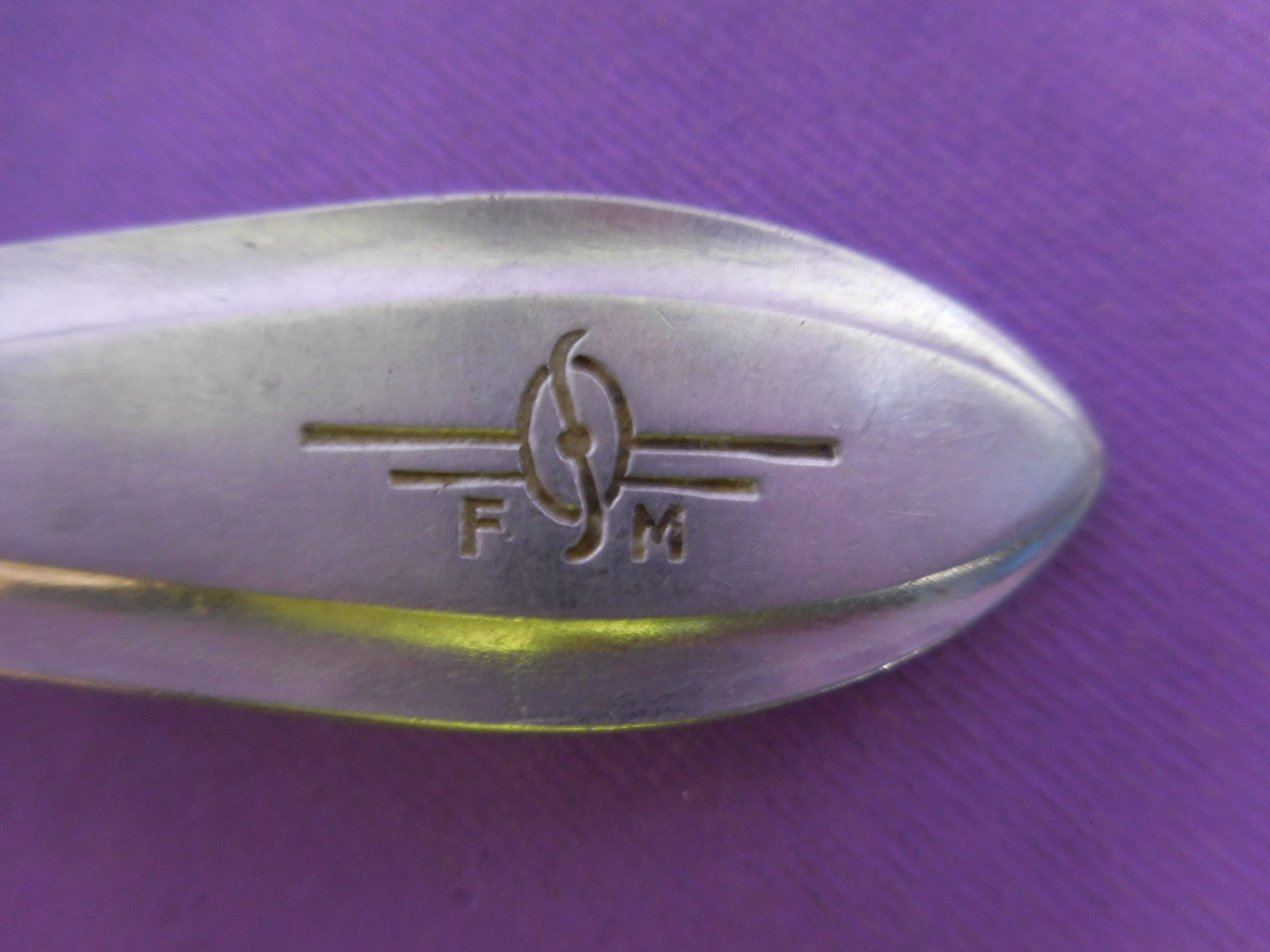 вітаю. можливо на ложці абревіатура FM - щось на зразок цього якщо я правильно розумію, Fördernde Mitglider - ветеранська організація. Крупп робила ложки такого ж дизайну для люфтваффе зроблю припущення, що прибори якраз і належали одній з таких ветеранських організацій (люфтваффе).
