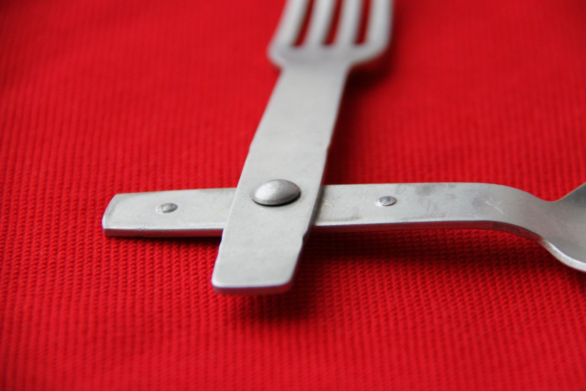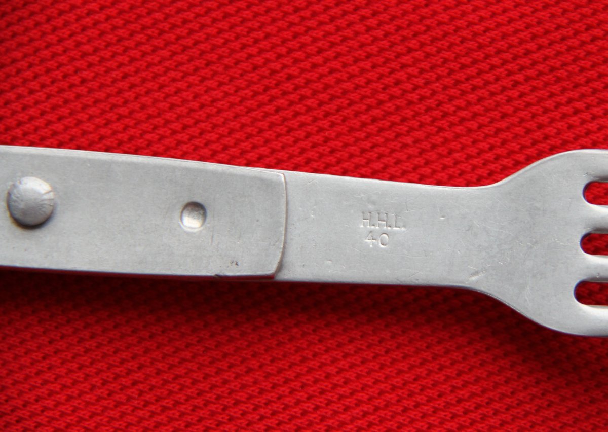 Ложка-Вилка в идеальном состоянии. Люминь. Без пробега по фронтам и реконструкциям. Заклепка в с воем девственном, заводском виде (не клепалась ). Клеймо - "H.H.L. 40" Производитель: Heinrich Haupt Ludenscheid. ( Хенрих Хаупт Люденшайд ) 1940 год. 350 гр.