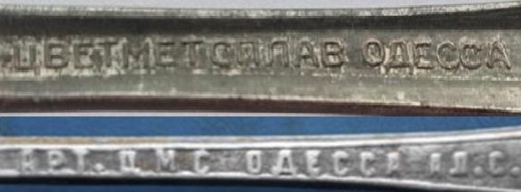 Доброго! Артель Цветметсплав створена на початку 30-х, входила до складу ОМПС (Одеський металпромсоюз). Станом на 1938 рік знаходилась за адресою: Одеса ул. Малоросійська, 53 (пізніше Адмірала Лазарєва, 59). Випускала ложки, гасові лампи, пряжки ВМФ. Існувала ніби до 50-х. Більше інфи по ній можливо є у цьому виданні (стор. 101), але я його у загальному доступі не знайшов. З повагою, .