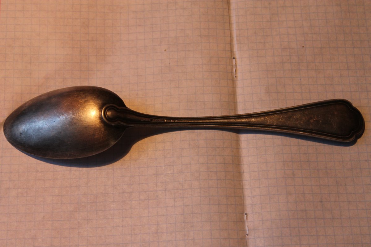 Ложка эта, производства итальянской фирмы "Broggi", с 1818 года специализирующейся на производстве столовых приборов. Для производства приборов идет классическая сталь с 18 процентами хрома и 10 процентами никеля. Благодаря хрому посуда получает стойкость к коррозии, прочность и блеск, а никель защищает от агрессивных пищевых кислот. Есть в ассортименте производителя и некоторые изделия, покрытые дополнительно серебром. Если очень интересно - интернет в помощь.