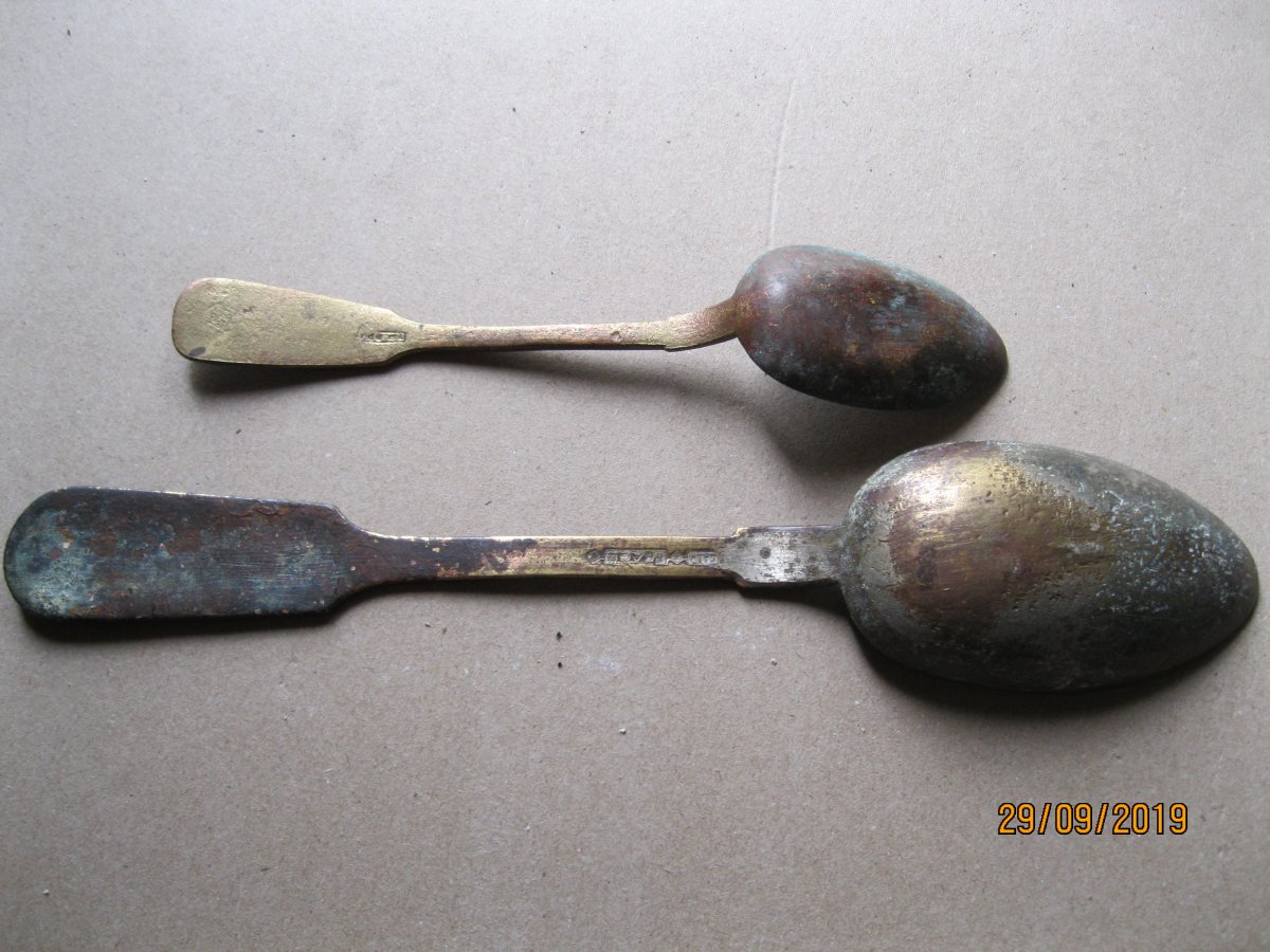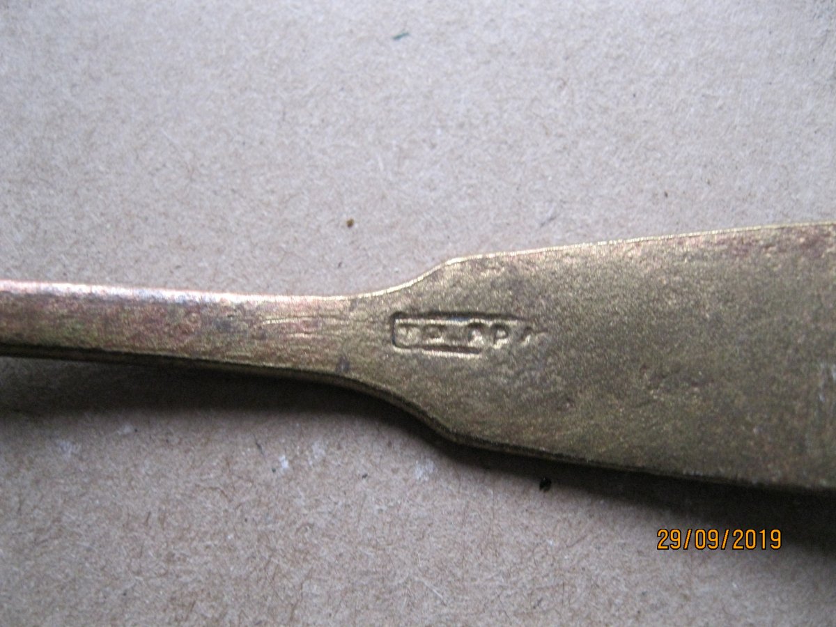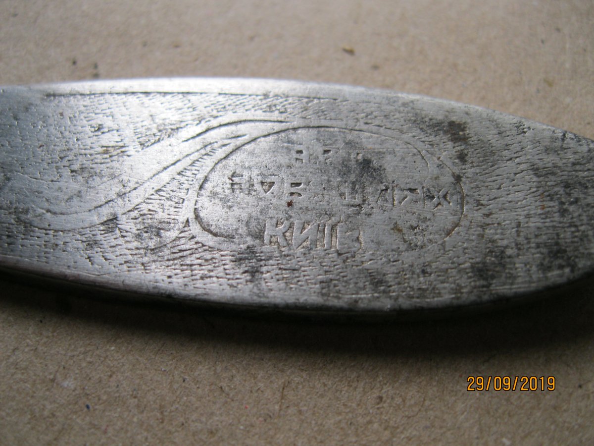 Приветствую. Прошу помощи в определении стран производителей и период. По возможности. 1- две ложки. 2- ал. чайная ложка. С позиций. 3- вилка нержавейка Киев. вроде артельная. 4-Вилка десертная-мельхиор. Видно клеймо КИ... 5- немецкая посеребреная чайная ложка с интересной ручкой. Возможно рукоблудие? 6- старинная чайная ложка . Клеймо не разберу. Возможно В.У.