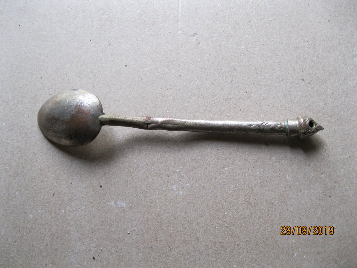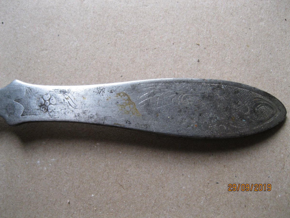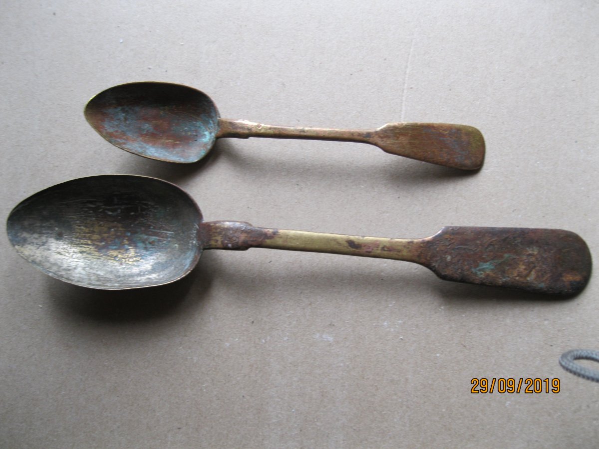 Приветствую. Прошу помощи в определении стран производителей и период. По возможности. 1- две ложки. 2- ал. чайная ложка. С позиций. 3- вилка нержавейка Киев. вроде артельная. 4-Вилка десертная-мельхиор. Видно клеймо КИ... 5- немецкая посеребреная чайная ложка с интересной ручкой. Возможно рукоблудие? 6- старинная чайная ложка . Клеймо не разберу. Возможно В.У.