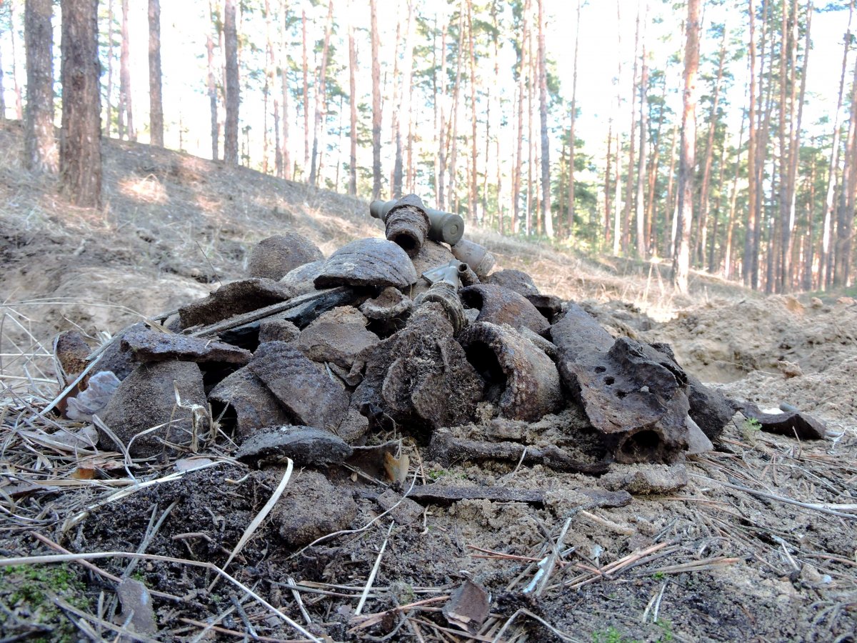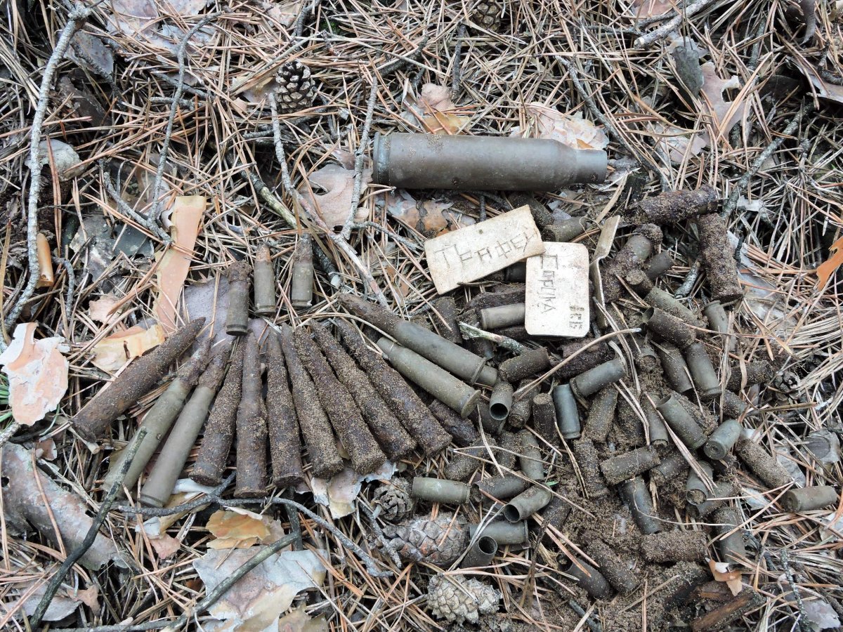 На том месте вокруг было относительно интересные находки раньше. Сейчас по большей части остались только гильзы и осколки.