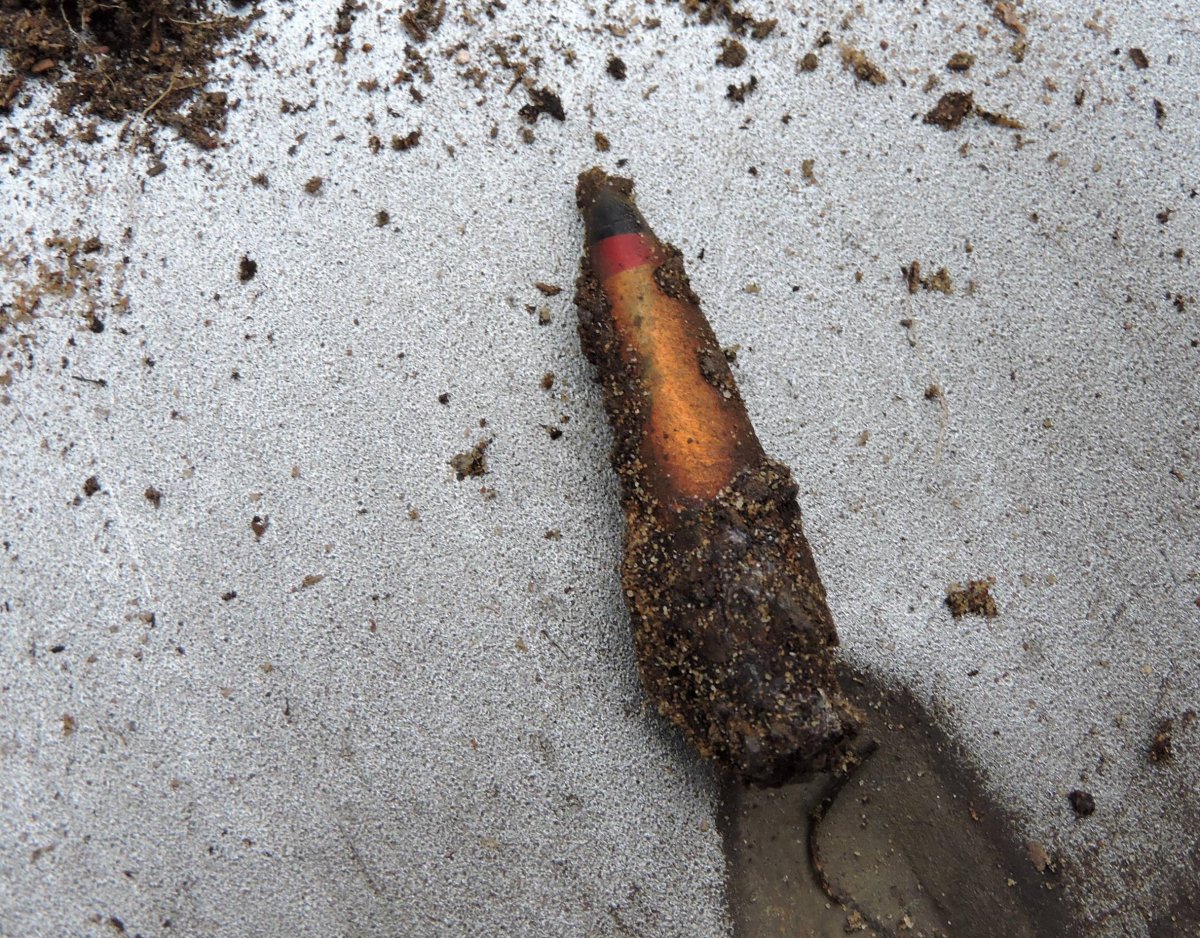 Граната отказная, лежала в стороне в кустах. её тоже решили закопать но позже кто то пришел отрыл и забрал её а бронебойки с мд-5 поразбрасывал рядом но не далеко.