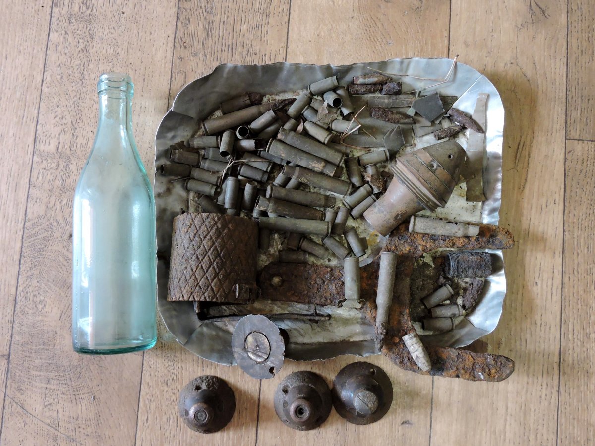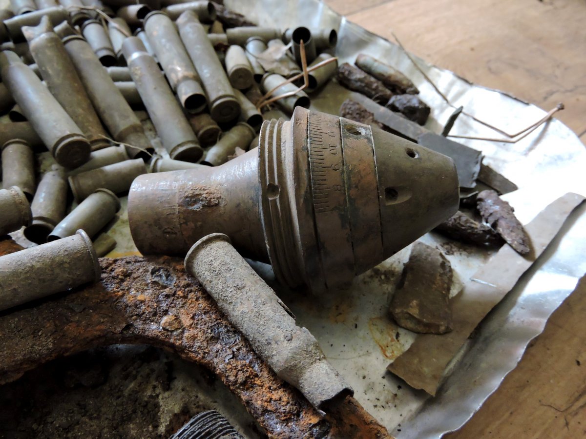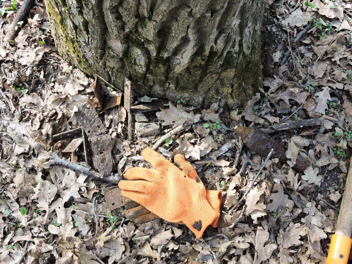 чуть дальше от той высоты в лиственном лесу комрад нашел. и там были свежие ямки, немного но глубокие и маленькие. Мой прибор с такой глубины не берет там по листве немного походили скраю и пошли назад, осколки и немного ппш. У комрада с мд проблемы, провод видимо переломался возле штекера что на пульт идет и замыкает его, а еще перестал отключать железа и повысилось чувствительность. По этому он ходил копал все что звенит и в основном это были гвозди и очень мелкие осколки. Для него это был день гвозде.
