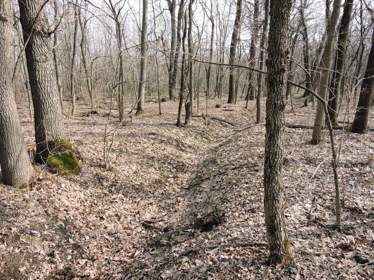 я там рядом проходил, ям нет, значит еще лежит, чуть дальше мину нашел. Мне металл оттуда тащить 8км до станции как то тоже не охота, так что пусть лежит. у меня есть места поближе. Там по краю склона должен быть окоп и еще некоторые позиции, но судя по всему они уже обвалились