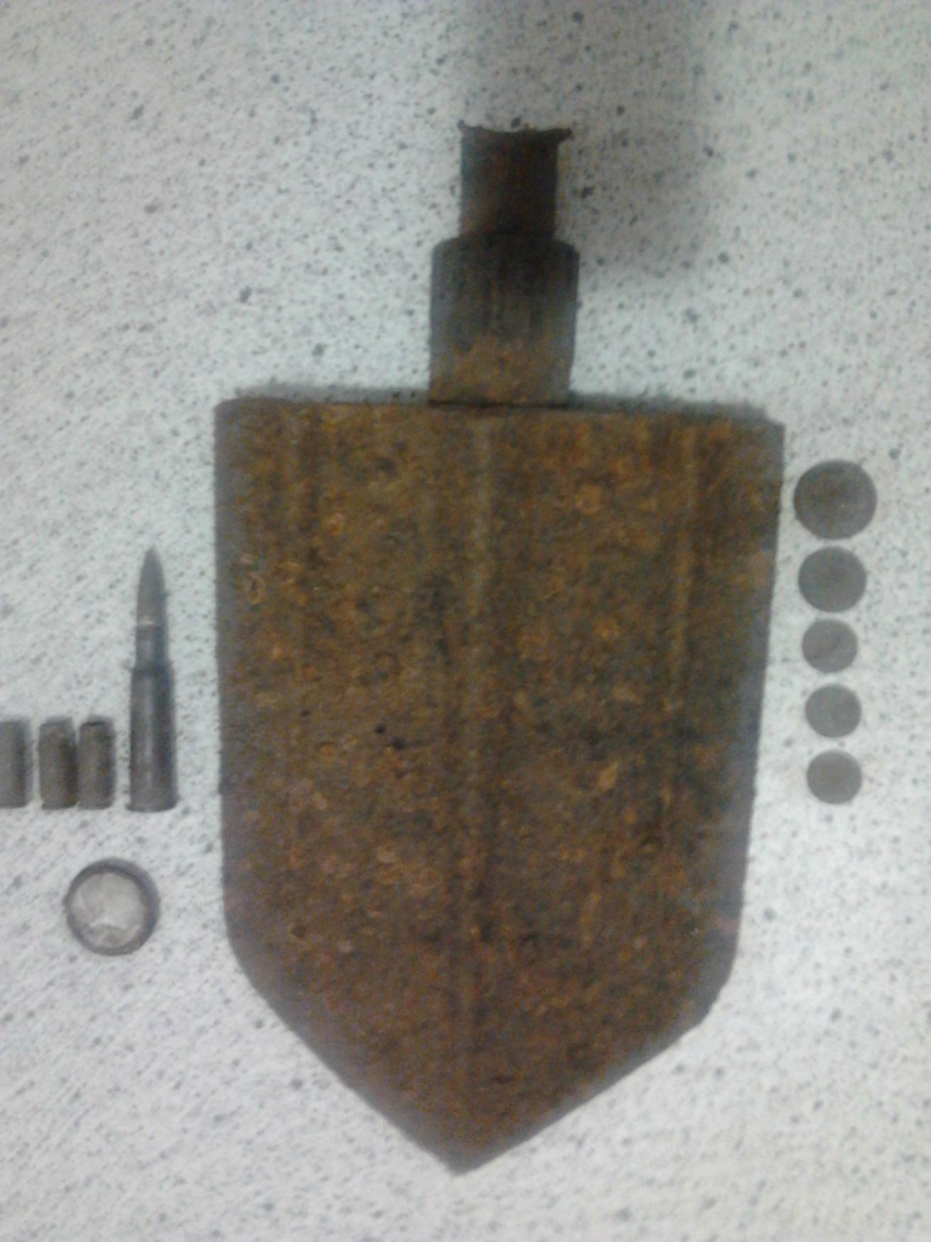 Re: Луганск вот опять был на копе наткнулись в лесу на ямки.вокруг накопали штук сорок разбросанных по одному совецких патронов,жаль железные згнили. а также лопатку,на стрел ппш и линзу. и ссср монеты 1971 и 1948г