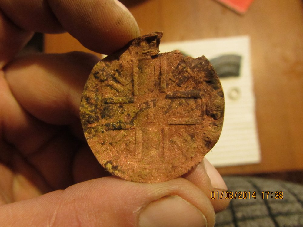 Поехал на хутор по пути пошел через яр наткнулись на место где стоял дом лесника.Два десятка крупнокалиберных гильз,немецкая пряга,,обручальное медное кольцо,штук пять всевозможных топоров, предохранительный колпачок,вилки ложки.