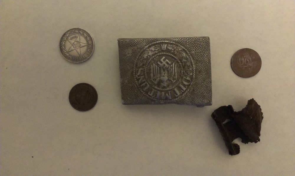 Вчера целый день занимался поиском позиций,о которых рассказывало старшее поколение и где по их словам копали пулеметы -винтовки.....Лет 20 назад это место засадили лесо посадкой--теперь там можно заблудиться...Хотел проверить--тем более на моих немецких картах из архива--там ничего нет......Короче ничего не нашел ...Пошел на свое любимое место--(фотки о находках выкладывал в июле 2013)..Назвонил глубинником пару узкоколеечных рельс и еще много всякой лобуды...Под конец прозвонил старые ,местами уже перерытые окопы. В месте ,где уже кто то прокопал на штык лопаты, поймал устойчивый сигнал...Проверил щупом----щуп 120 см--почти полностью ушел в землю и на своем пределе уткнулся -явно в метал..Копал с энтузиазмом--т.к времени уже было мало--вечерело....Обильно сыпались гильзы..Первым выудил переноску от РПД---в ней был диск---оказался пустым----вторым переноску от минометных мин..Ящик был закрыт---была надежда ,что там что то есть и в хорошем сохране, но во время извлечения понял,что он пуст.При открытии ящика удивило состояние деревянной планочки --у которой вид был -как только с завода,хотя сам ящик был прогнившим.Дале на дне окопа показались шпалы----ими был устлано дно окопа.....Перед уходом прозвонил ячейки по соседству-----звенит----хотел сегодня проверить---помешал дождь..
