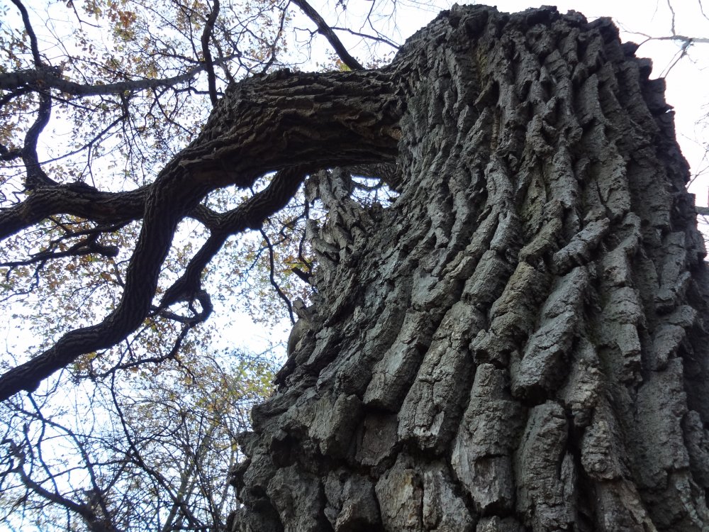 ))) Спасибо, наслаждайтесь. В схроне живёт бомж-бандеровец...))))) В лесу можно встретить статуи, вырезанные из поваленных деревьев. Место это очень необычное, атмосфера Мордора присутствует. Следы деятельности сатанистов и язычников тоже обычное дело. На горе есть капище со статуей Перуна, недавно пострадавшее от вандалов. Ещё один идол на берегу высохшего Русалочьего озера. А старые развалины исписаны сатанинской символикой. За высохшим озером возвышается обрыв. Это средняя гора, на которой стоит капище. Интересная деталь, сверху над обрывом кто-то активно накопал ям. Ямы довольно немаленькие, до 1,5 метров, в количестве 15-20 штук (есть на фото). Зачем??? Очень похоже, что кто-то пытается сделать искусственный отвал обрыва. Возможно ищут подземные постройки. На одной из полян я наткнулся на могильный камень некоего Алексея Коршунова. Это русский националист, член какой-то радикальной группировки, был убит в Запорожье в 2011 году. Инфу об этом можно найти в сети. На могилу не похоже, скорее всего похоронен он в другом месте. Видимо, единомышленники решили сделать ему здесь минимемориал. По западному склону горы течёт небольшой потик, образующий озеро. Спуститься к нему можно по металлической лестнице. На горе очень много вековых дубов. В том числе дуб Тотлебена. Есть деревья с большими дуплами. Иногда оные обитаемы, в прошлом году в одном жила лиса. Не очень любившая гостей...))) Так, что заглядывая, будьте осторожны. Теперь немного панорамных фото.