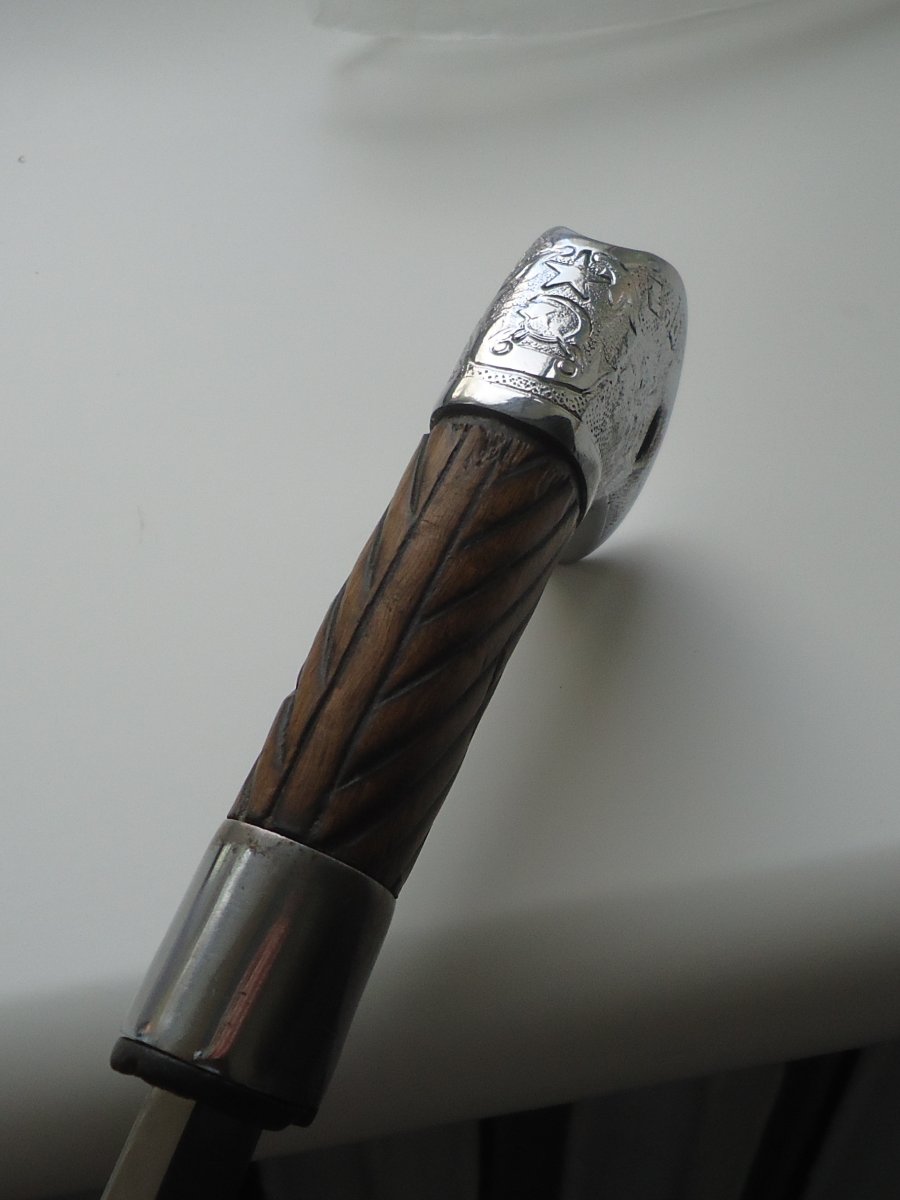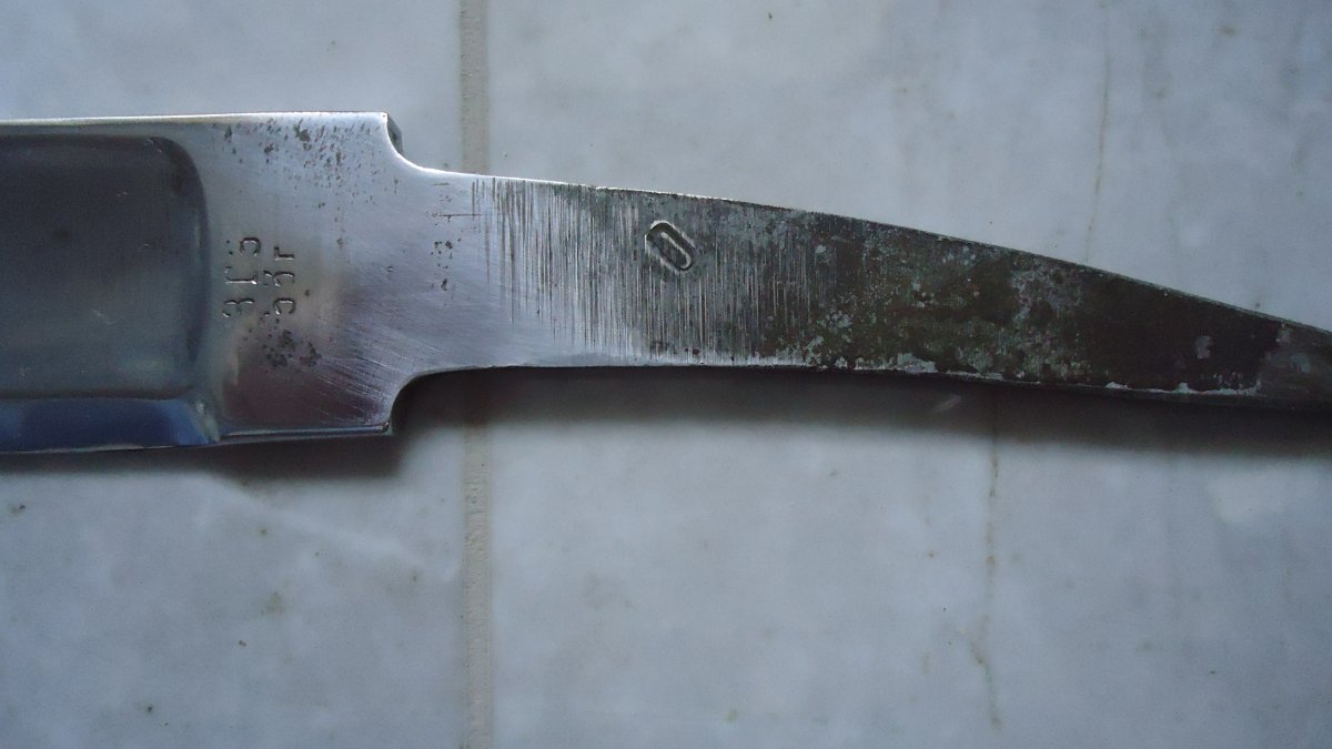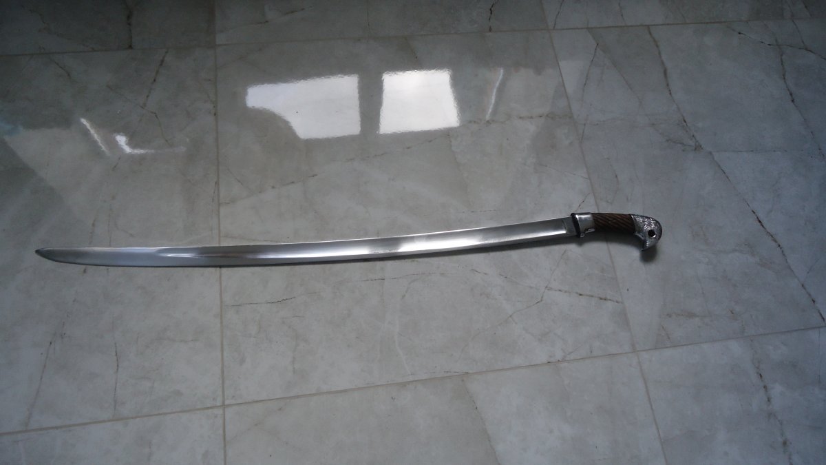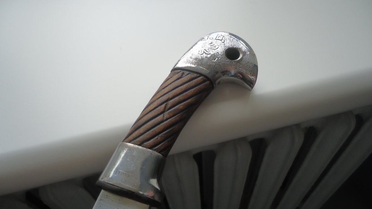 Доброго всем.Собственно говоря ничего необычного.Предмет заполирован в усмерть но геометрия сохранена и клейма.Арматура-суррогат.Гайка не затянута Интересует цена.Ножен нет С ув