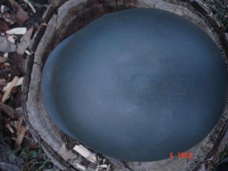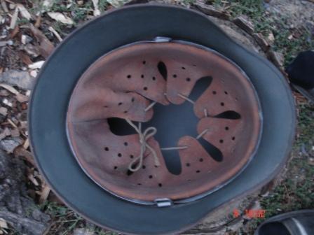 Это м-35. Вы не могли бы вывернуть кожу подшлема и сфотографировать клейма на ободе?Что за затемнения на куполе?