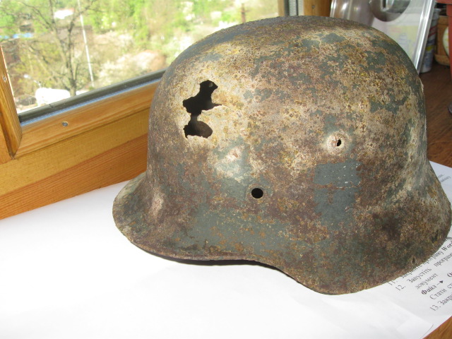 Приветствую . Подскажите по стоимости даного шлема . Размер шлема 64 , присутствует редкое клеймо с левой стороны ( SESt64 ) , сзади клейма не видно . Шлем кислотился в щавельной кислоте , присутствуют два пулевых отверствия сзади и вылет в лобовой части . Клеймо - . Сам шлем - .