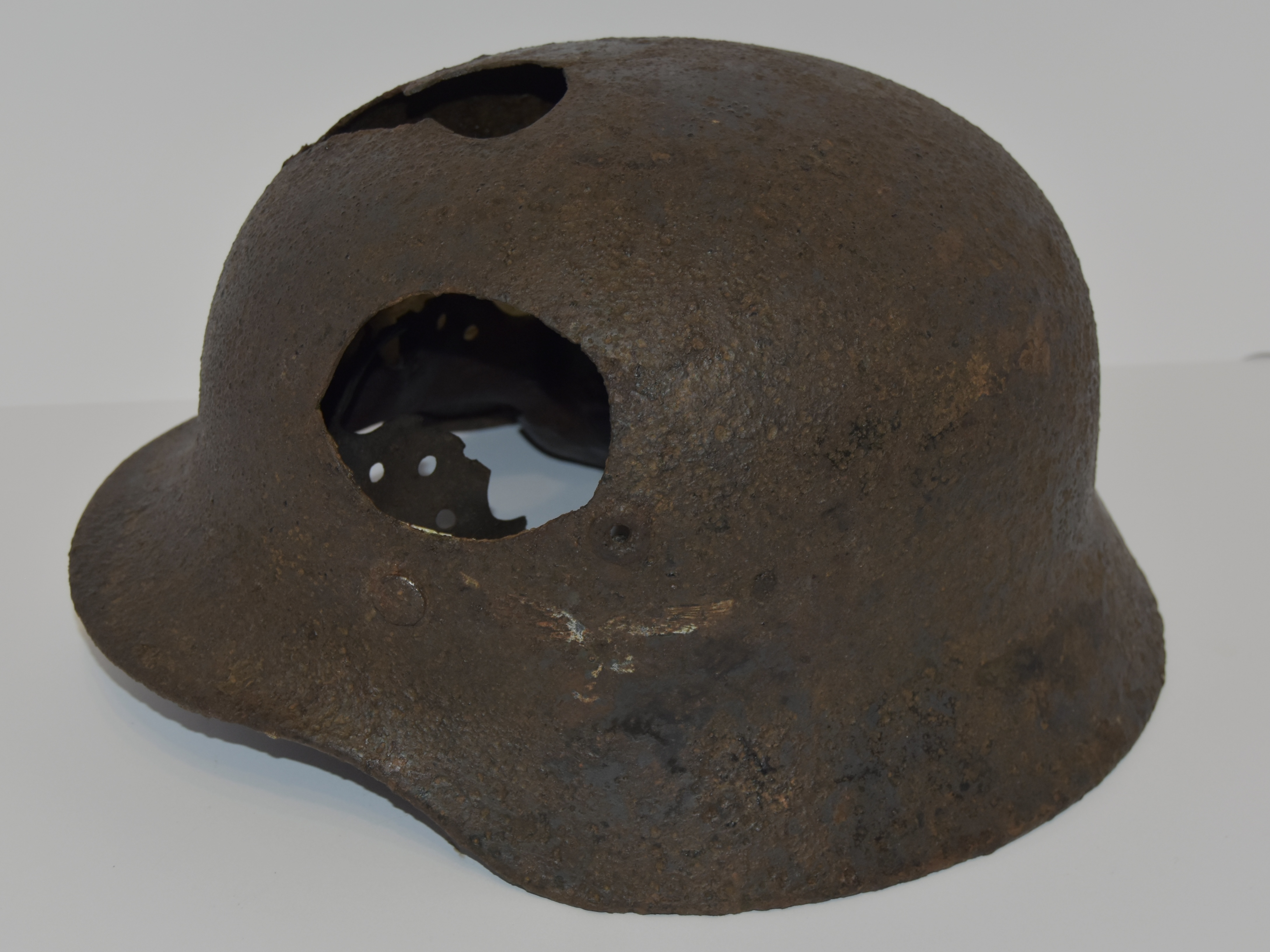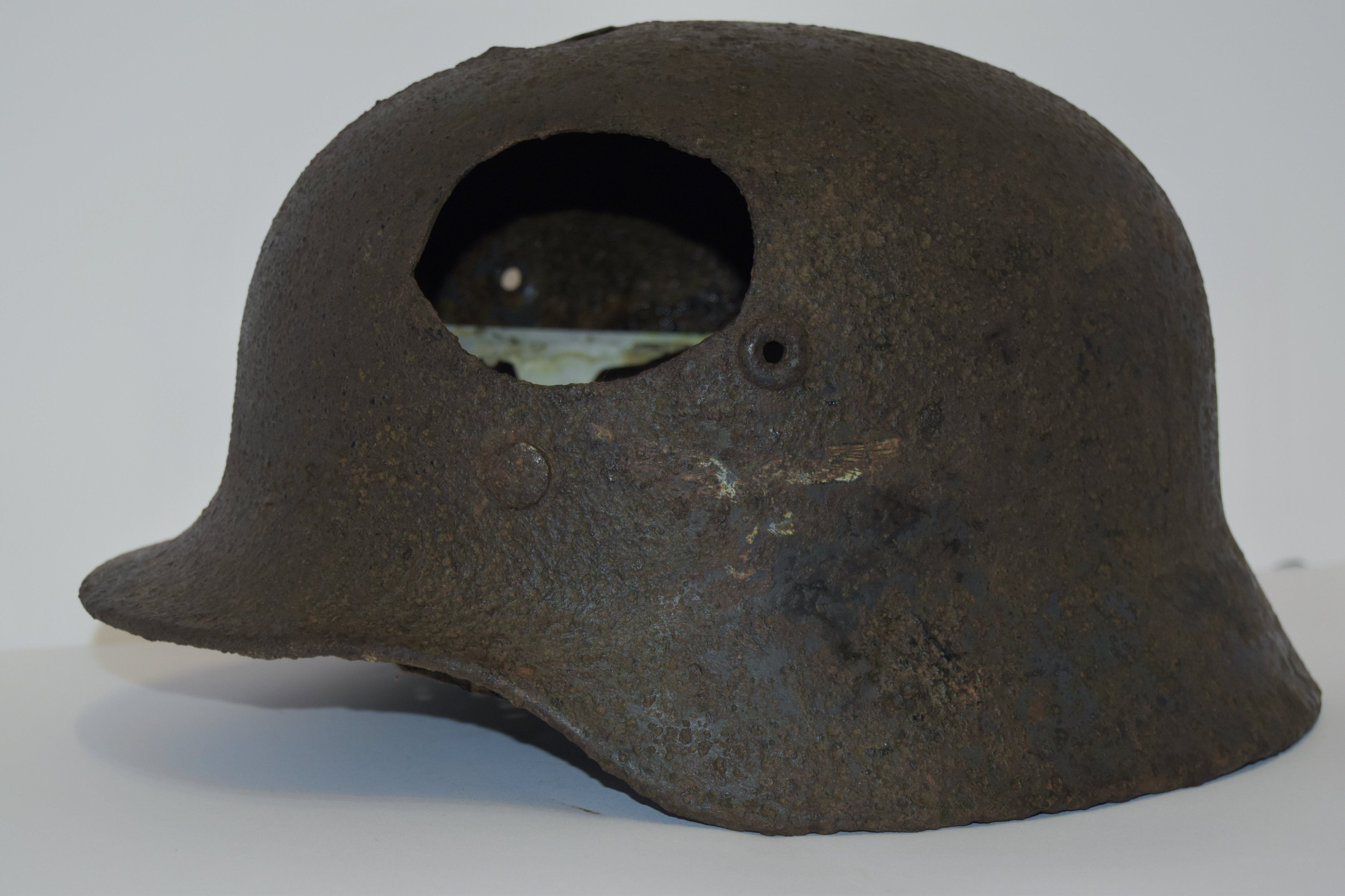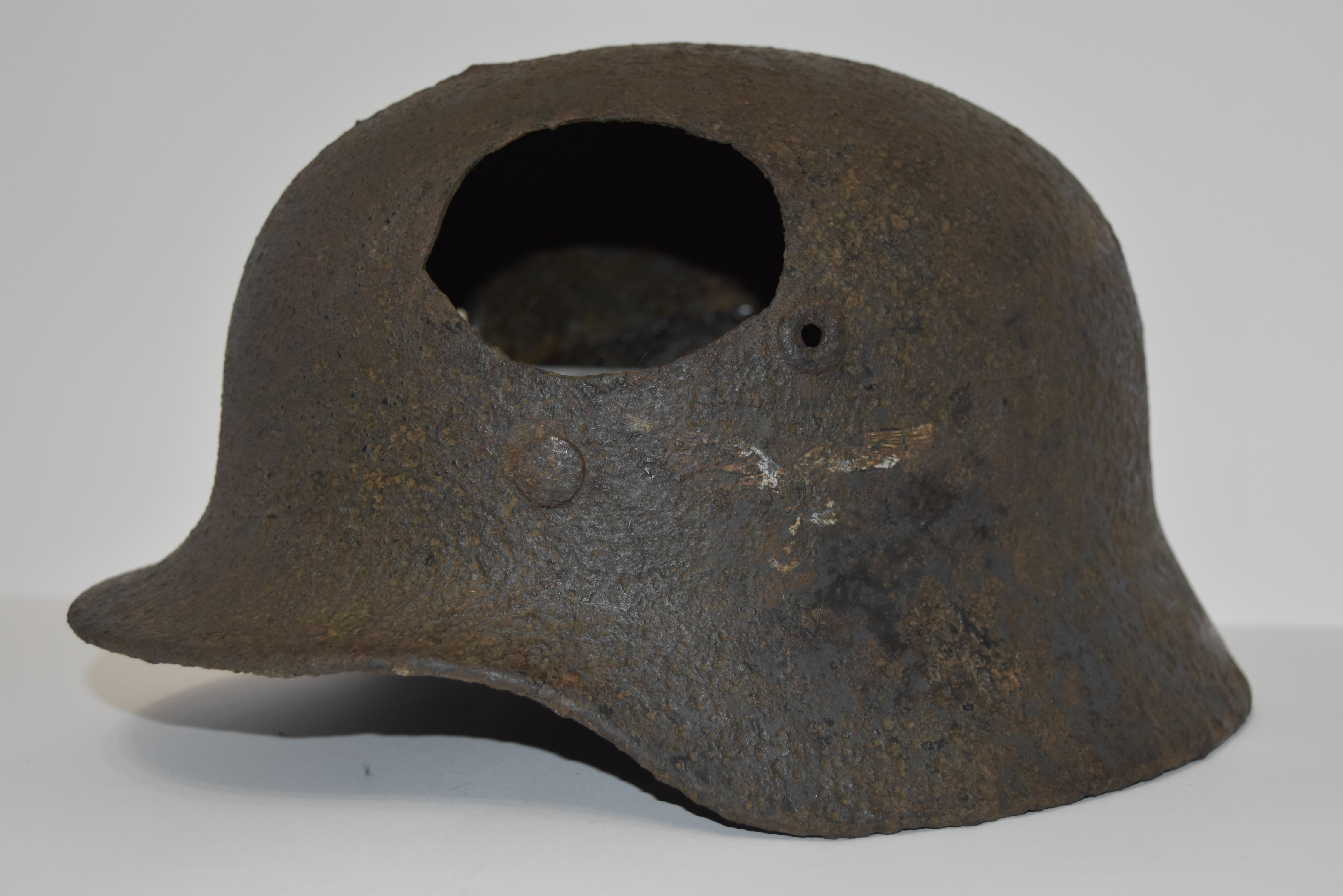 На оценку Каска M-40 Q66 luftwaffe с дополнительной вентиляцтей ( выбитые фрагменты). Родная декаль,остатки краски.