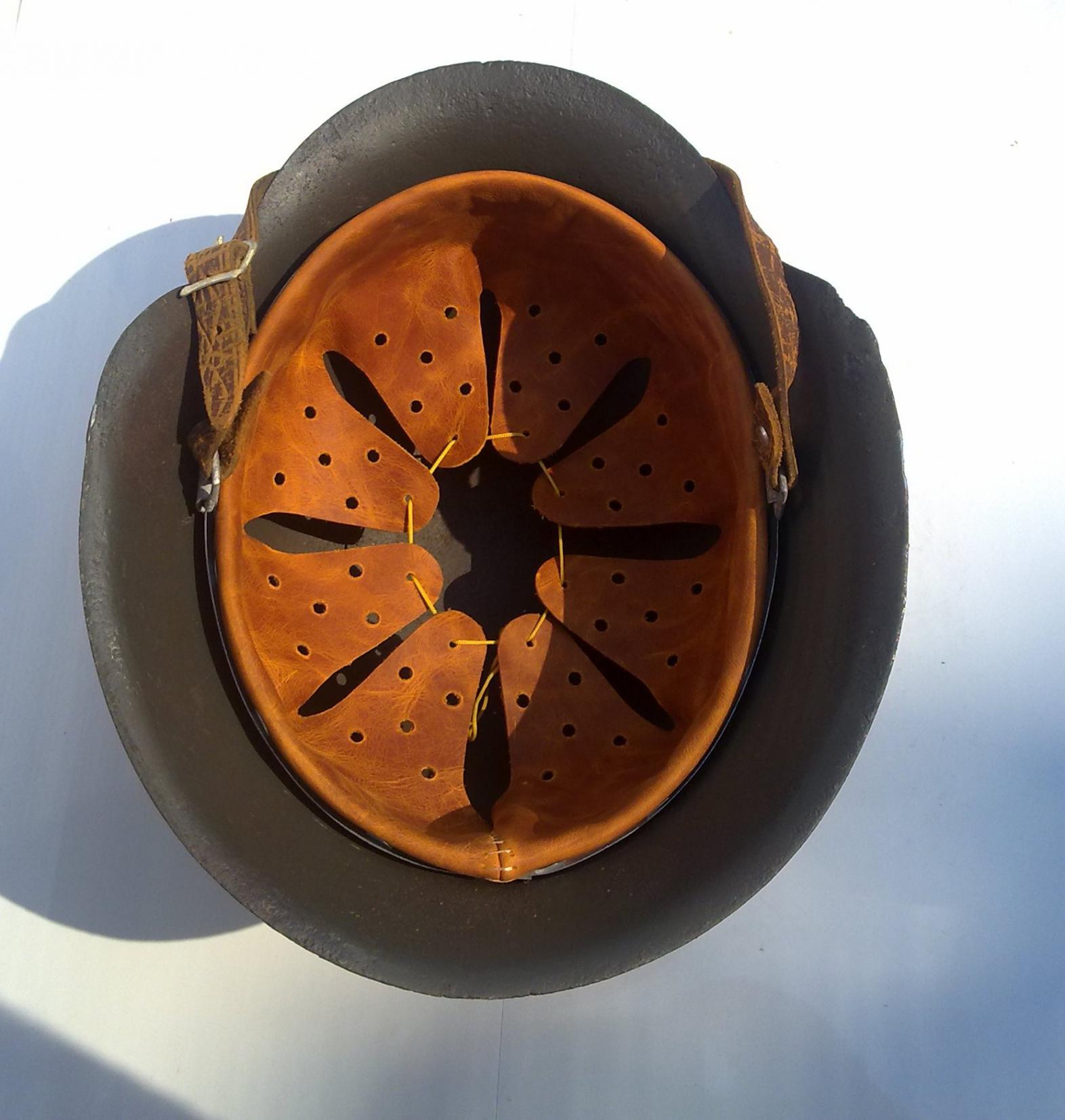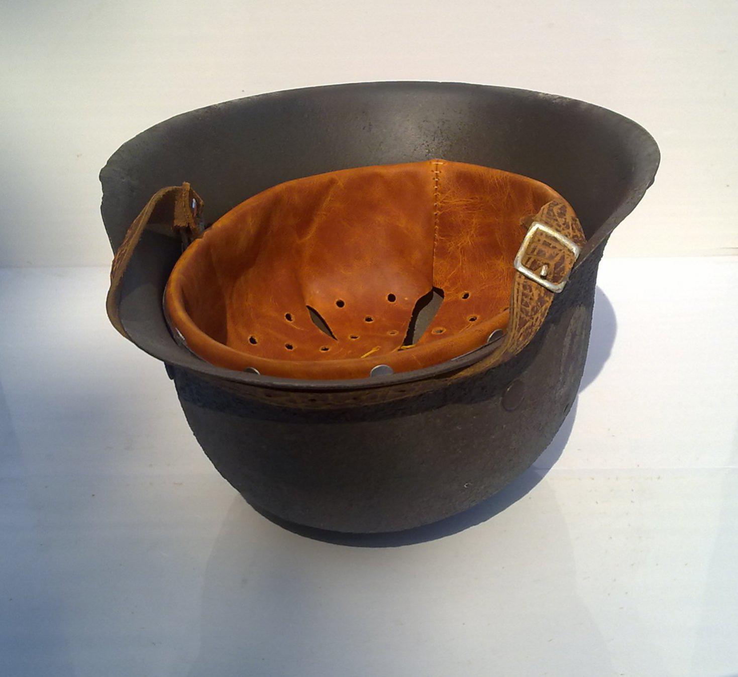Исходник из деревни,в земле не был. Алюминиевая шпатлевка в 3х местах.Подварен. Серьги родные,пряжка хорошего качества,катушки алюминий,кламера кожи алюминий,кожа КРС хамелеон(в процессе носки меняет цвет,от темно-коричневого до рыжего,эффект "старой" кожи). На все возникшие вопросы,отвечаю в личке. На 60-61 размере головы,"сидит" отлично. 115$ и дорога.В Россию и по СНГ отправлю.