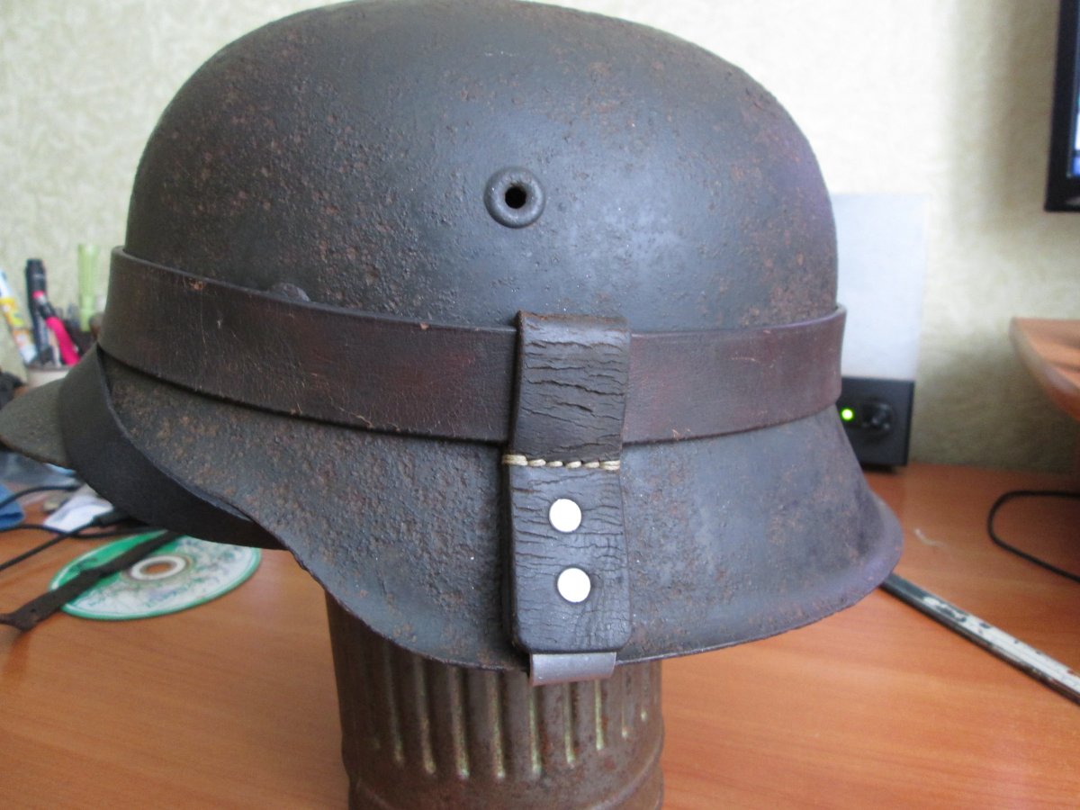 Продам каску м 42 . Присутствуют остатки родной краски . Колпак тяжёлый , без трещин и дыр . Каска после щавельки . Обруч родной . Производство Лицманштадт 1943 г. в отличном состоянии . К каске прилагается транспортировочный ремень . Оригинал : Кламера , обруч , карабин ,катушка подбородочника . Реплики :Подбородочный ремешок , декаль ,транспортировочный ремешок ( карабин оригинал ) , штамп , пряжка транспортировочного ремешка . Вопросы пожалуйста в личку . Отправка за счёт покупателя . Цена 2200 гр .