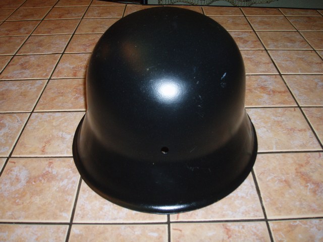 Есть вот такой горшочег , грунтованый черным , полностью нульцевый . Серийный номер на месте , нет размерного клейма . Пробовал смыть черный грунт растворителем - не получилось , только блестеть стала , как рокерский горшок ! Подшлемнеик четырех лепестковый ( примерно , как трёх лепестковый у 16-ки ) снял . Скорее всего на пожарника послевоенного или полициянта . По геометрии сферы и толщине металла один в один 42-ка ( есть с чем сравнить ) Вставлял фитменный обручь подшлема - оно ! Размер - 66 . Что может стоить такой девайс ?