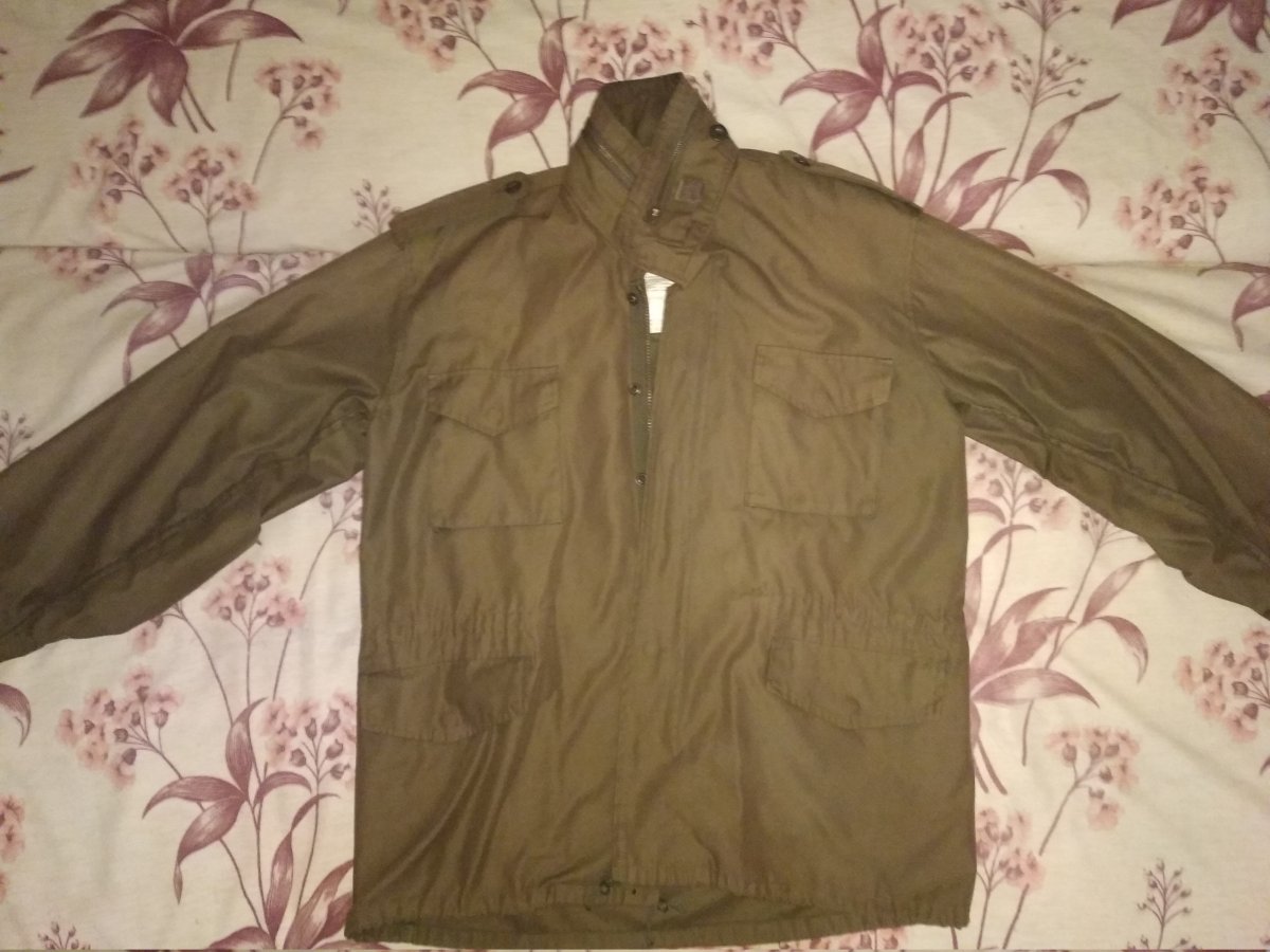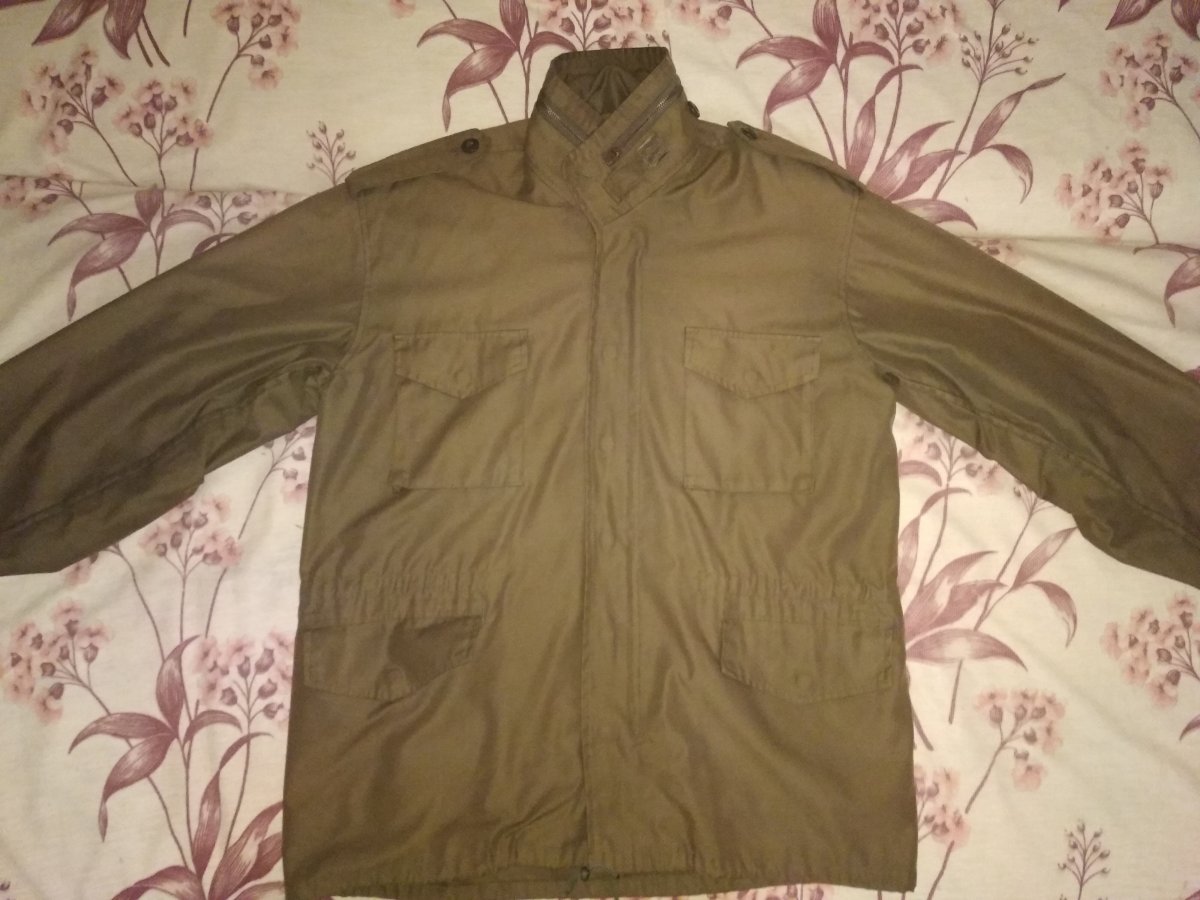 Продам куртку М-65. Состояние ткани нормальное, нигде ничего не порвано, отсутствует самая верхняя кнопка, змейка старенькая, но работает. Капюшон есть, стандартно прячется, подкладки нет.