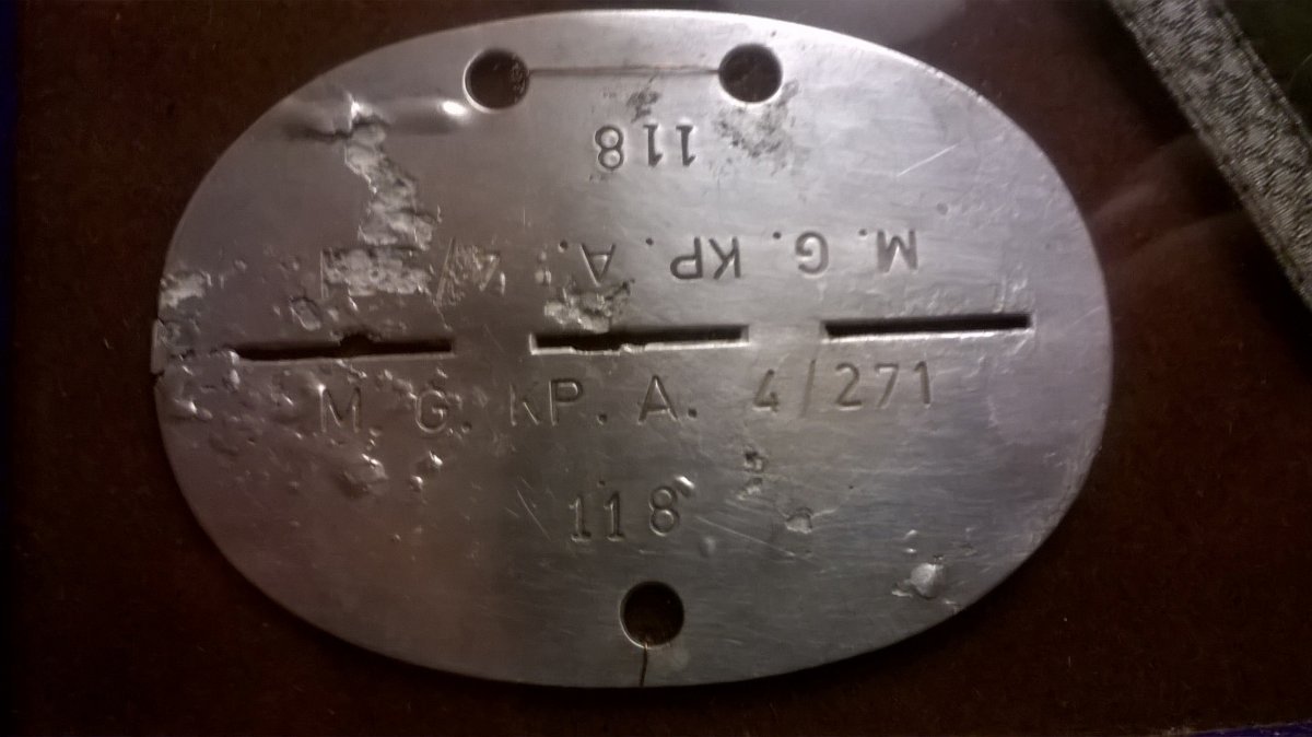 Я почему то считал, что такие простые жетоны Вы умеете расшифровать. 4 пулеметная рота 271 пехотного полка. А тип пулеметов. Зачем они указывали это на жетоне для определения трупа, неясно. Ну а в лексиконе , считаю, 271 infanterie полк вы можете и сами найти. Вы не знаете как смотреть в лексиконе или не можете разобраться в этом не сайте ?