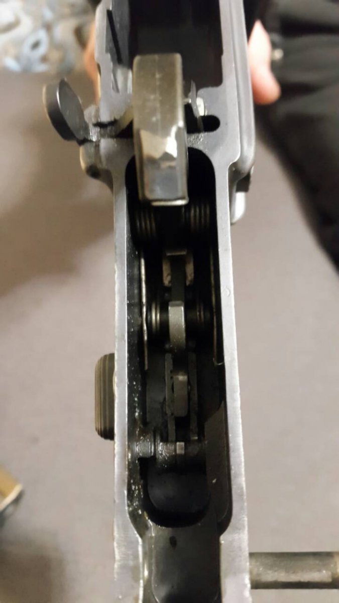 Судя по торчащему штифту УСМ (хаммера), карабин многое повидал. Какой настрел?