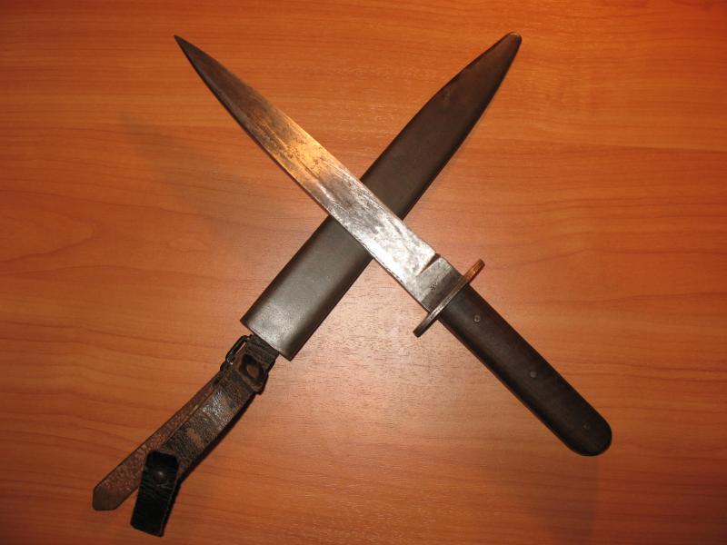 Нет. Нож не стоял на вооружении поляков. Это раз. Примеров много... Это два. Взять Маннлихер М-95. После службы в А.-В. были у болгаров. Электрокарандашом нанесли новый номер винтовки. Всё. Точка. Немецкие SG 84/98. После ВМВ где только не служили. Новый номер набили. Точка. Норвеги сменяли ещё подвесы на ножнах (по обр. США) Всё! Готово. Смена места службы у многих длинных штыков по ПМВ - забили номер полка, к примеру, Пруссии, набили номер Баварского полка. Готово. Смена гарды (и то, только у штыков!!!) происходила при необходимости другого размера диаметра ствольного кольца!!! Не ищите оправдания рукоделия вашего польского "камрада" или его предшественника)))