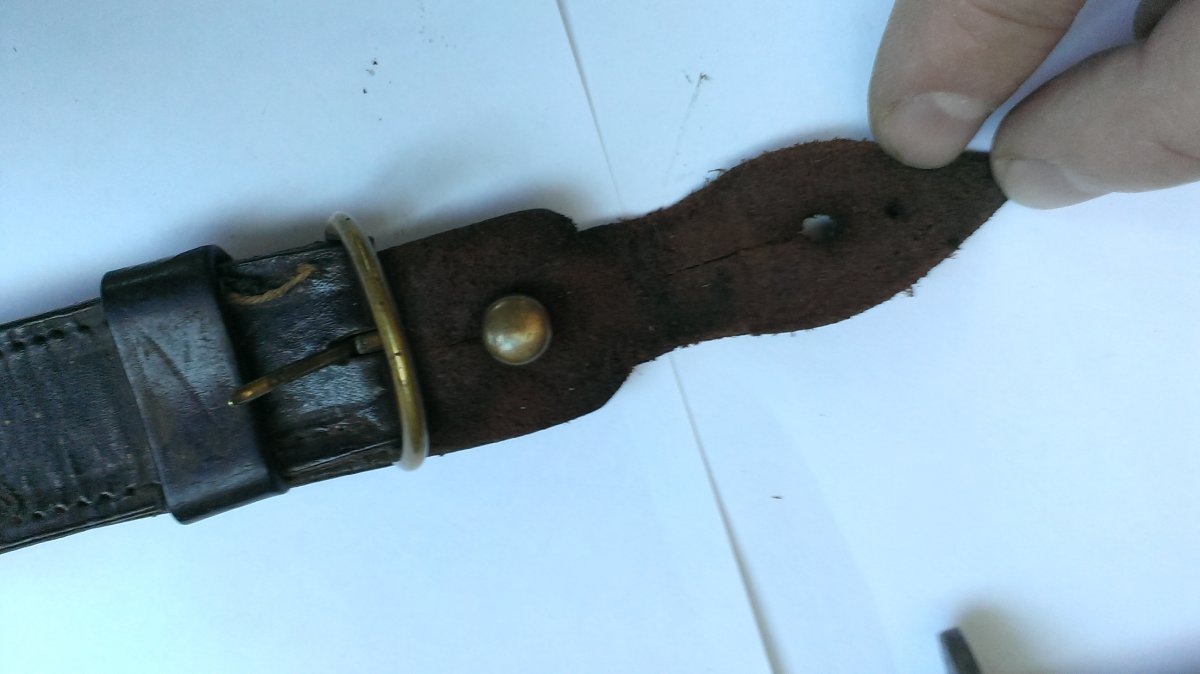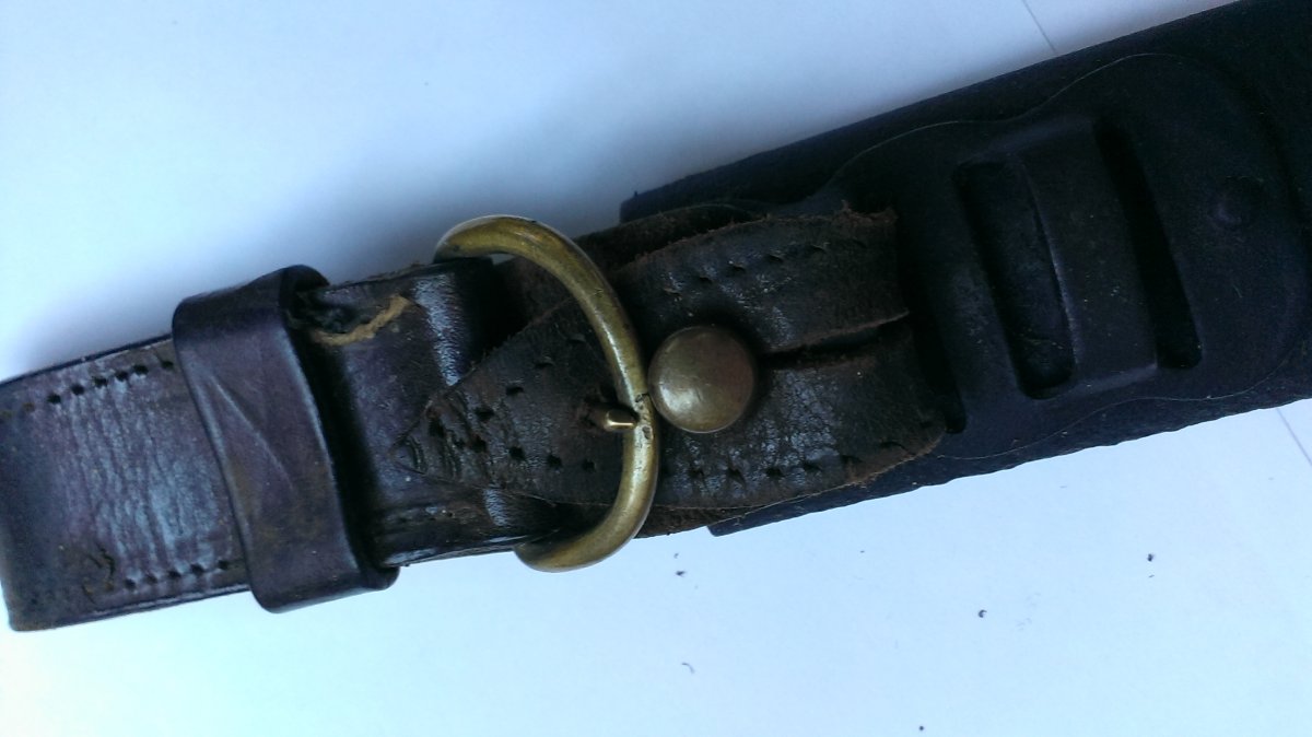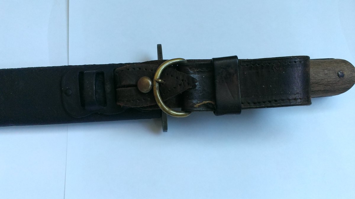 Ещё раз глянул... По-моему, это часть портупеи (черезплечевого ремня) от офицерского ремня. Разверните полностью, как я показал красной линией, тогда будет понятнее.