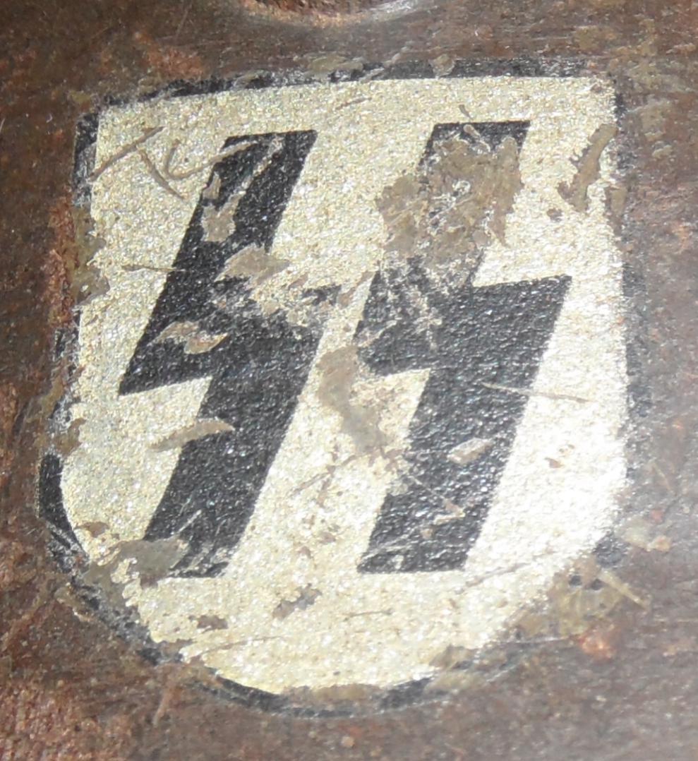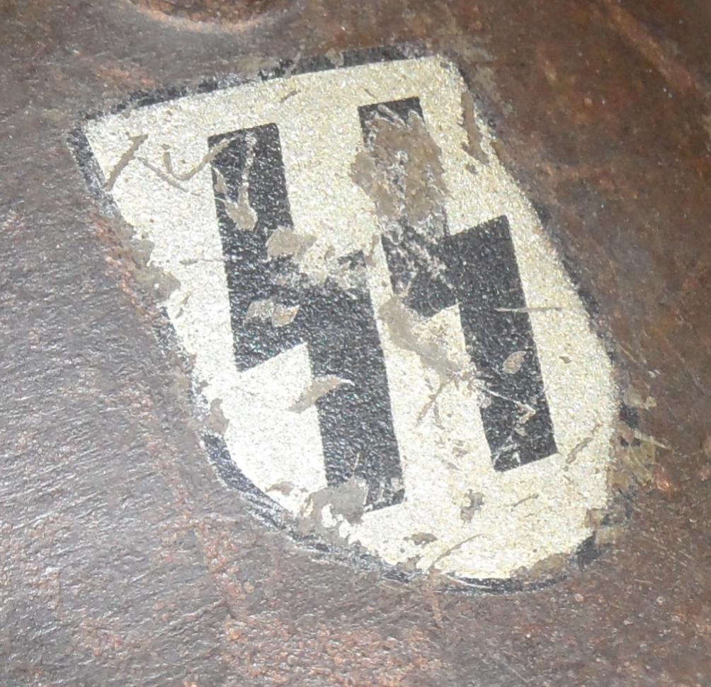 Оба типа рун СС начали выпускать в середине 30х годов, некоторые считают что второй тип чуть позже, с 39 года. По 35 году часто встречаются руны нарисованные от руки или под трафарет. Но тут мы видим явно готовую декаль.