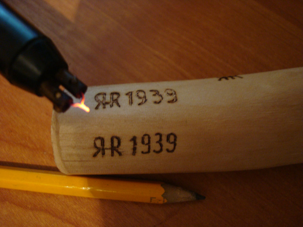 Ответ: М24 Мдя, выжигателем не очень пока получается, хотя.... может повыжигав еще раз 20 я научусь писать ровно, а пока получается коряво. После выжигания можно поскоблить иголочкой огарки и зашкурить наждачкой. Может что и выйдет, на неделе попробую ужо не на куске березы а на ручке, дай бог не испорчу ее....
