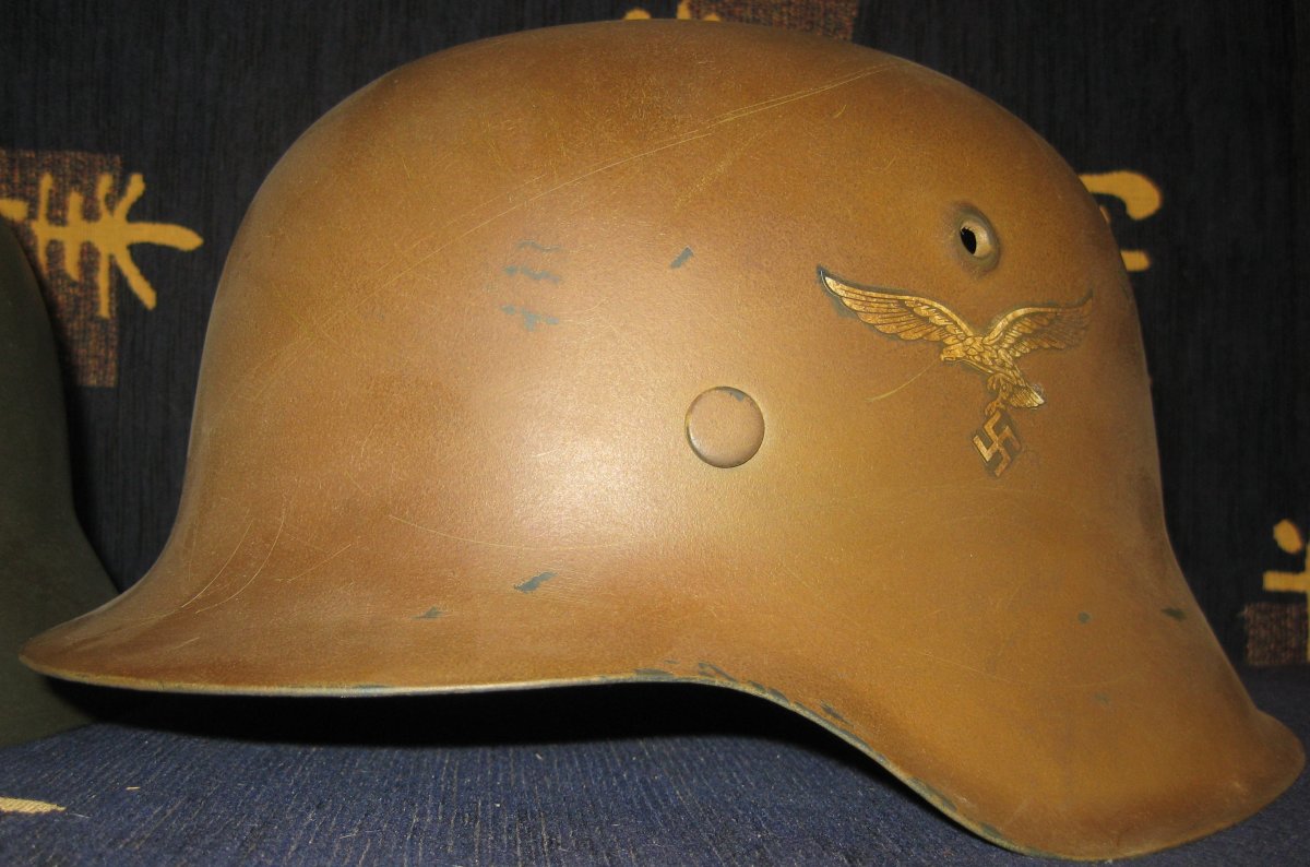 М 35 , сделана отлично . Замечательная проработка люверсов , вальца . Неплохо состарин партийник , цвет приятный . М 42 , честно говоря не впечатлил . Как по мне , цвет не соответствует DAK . Орёл чересчур замусолен . Ну и самая больная тема это фактура . Вот с ней то у большинства касочников , большая проблема. На данной модели каски , она должна обязательно присутствовать .