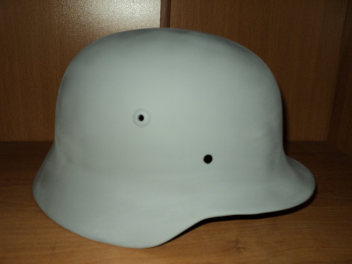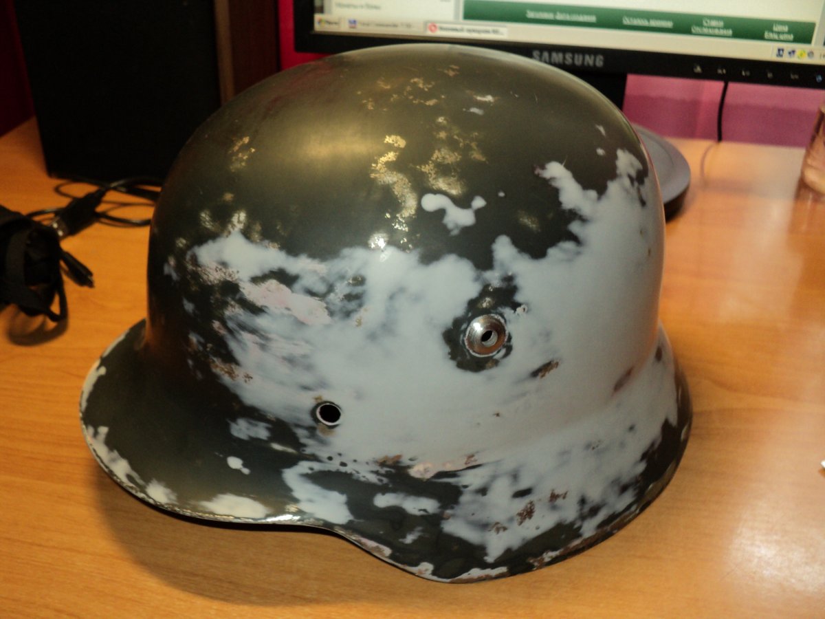 встряну в тему, т.к. когда то тоже с касками заморачивался ... дело в том, что даже вещь крашеная матовой краской при контакте с амуницией, сукном униформы, таскания в рюкзаке, ранце - со временем тоже начинает становиться местами глянцевой.