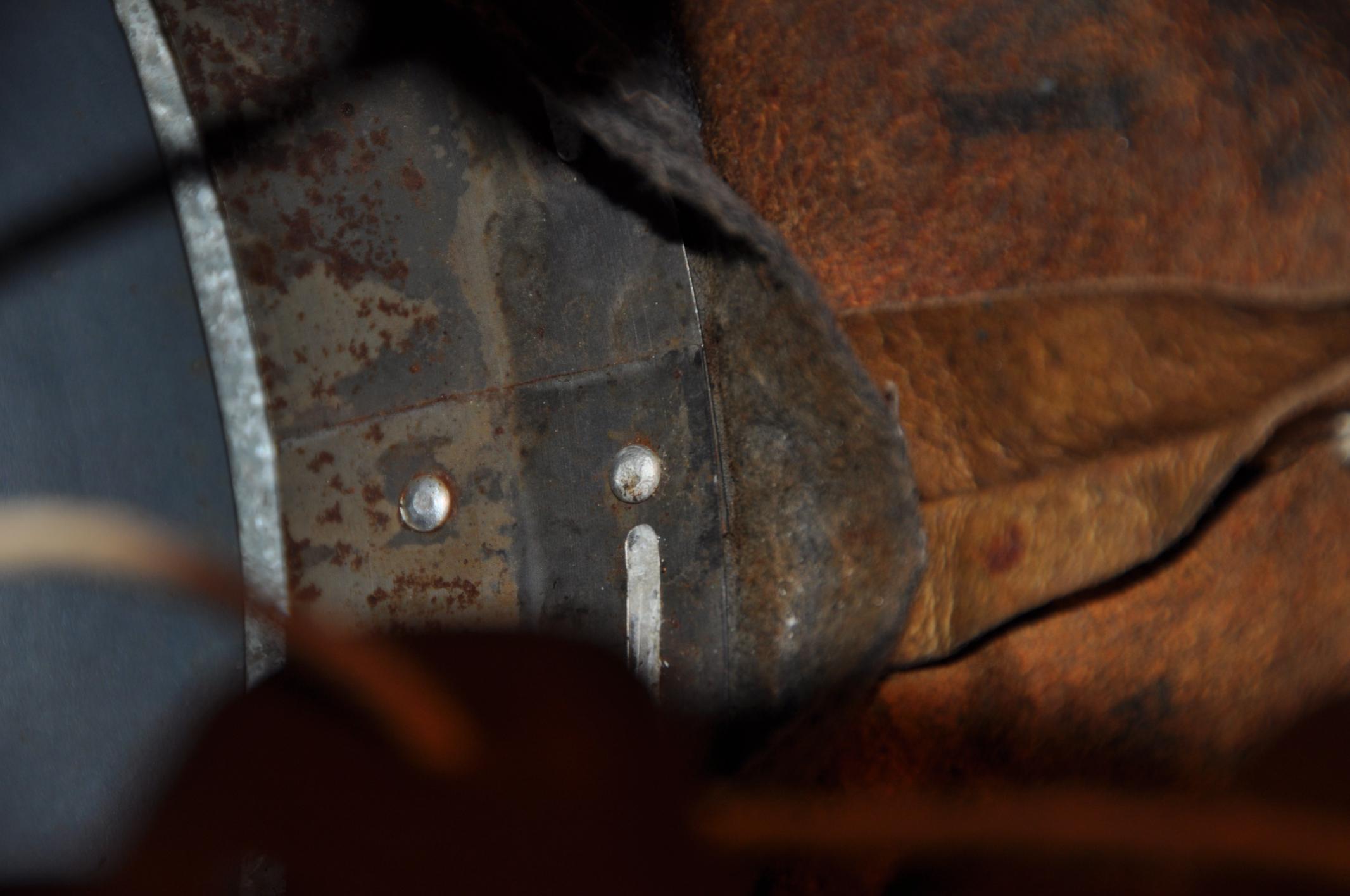 Лично мне кажется странньім, почему краска местами с фактурой, а местами ровная, при чем на фронтовой перекрас не похоже. Почему кламмера совсем без краски, хоть вокруг них ничего не поцарапано. Как по мне, подшлем доверия не внушает. И еще вопрос, то что обведено красньім, ето следьі краски на обруче?