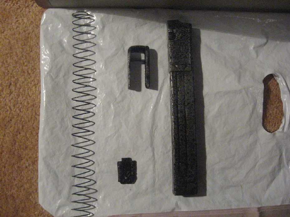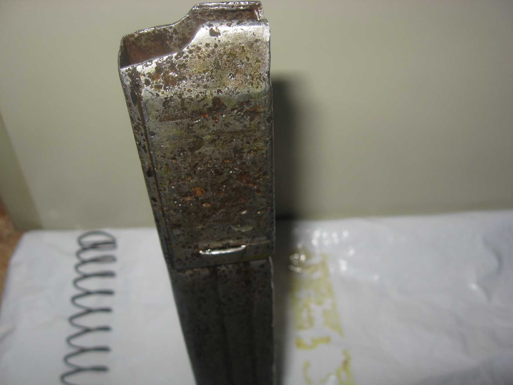 Магазин к пистолетам-пулемётам MP-38/40. Всё рабочее: -пружина крепкая,полная длина без изъянов; -подаватель целый в рабочем состоянии; -коробка магазина крепкая, но с наружи побита "молью"; -нижняя крышечка родная, пружину держит устойчиво, замочек работает, с наружи побита "молью"; Всё изделие в сборе работает безотказно.Подача чёткая, без заеданий и перекосов. Вставляется и снимается без усилий(как в кино-щёлк!) Цена: 500грн+дорога p.s. Для любителей штампов, клейм и прочей атрибутики-на подавателе есть, на коробке 32 и ещё что-то просматривается.